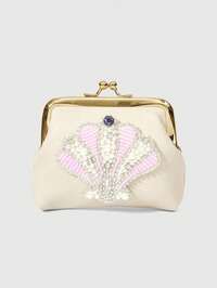 Fairycore Eine handgefertigte Perlen-Muschelperlen-Wechseltasche, beige Strass-dekorative Wechseltasche, Retro-Schnallen-Mini-Aufbewahrungstasche.