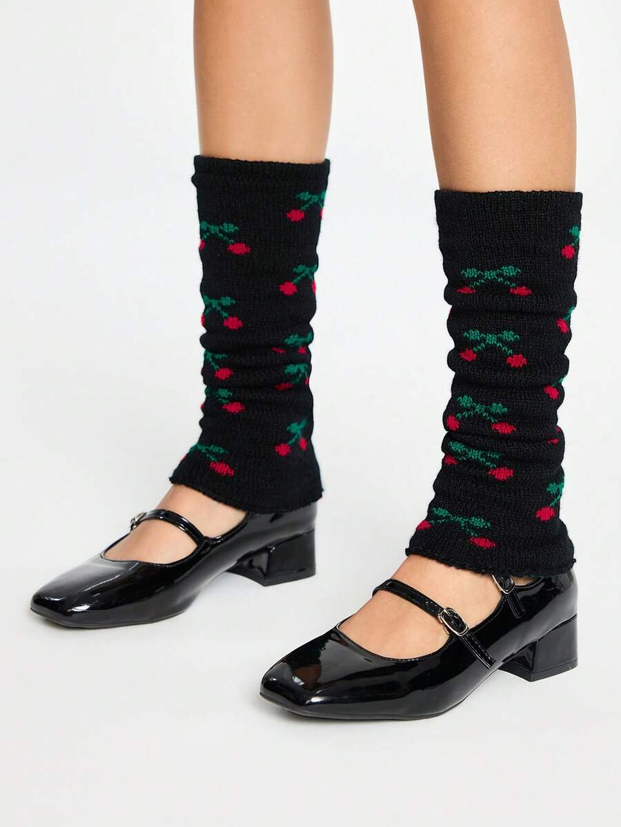 1 Paar niedliche Kawaii kleine Kirsch-Muster weiße Beinstulpen