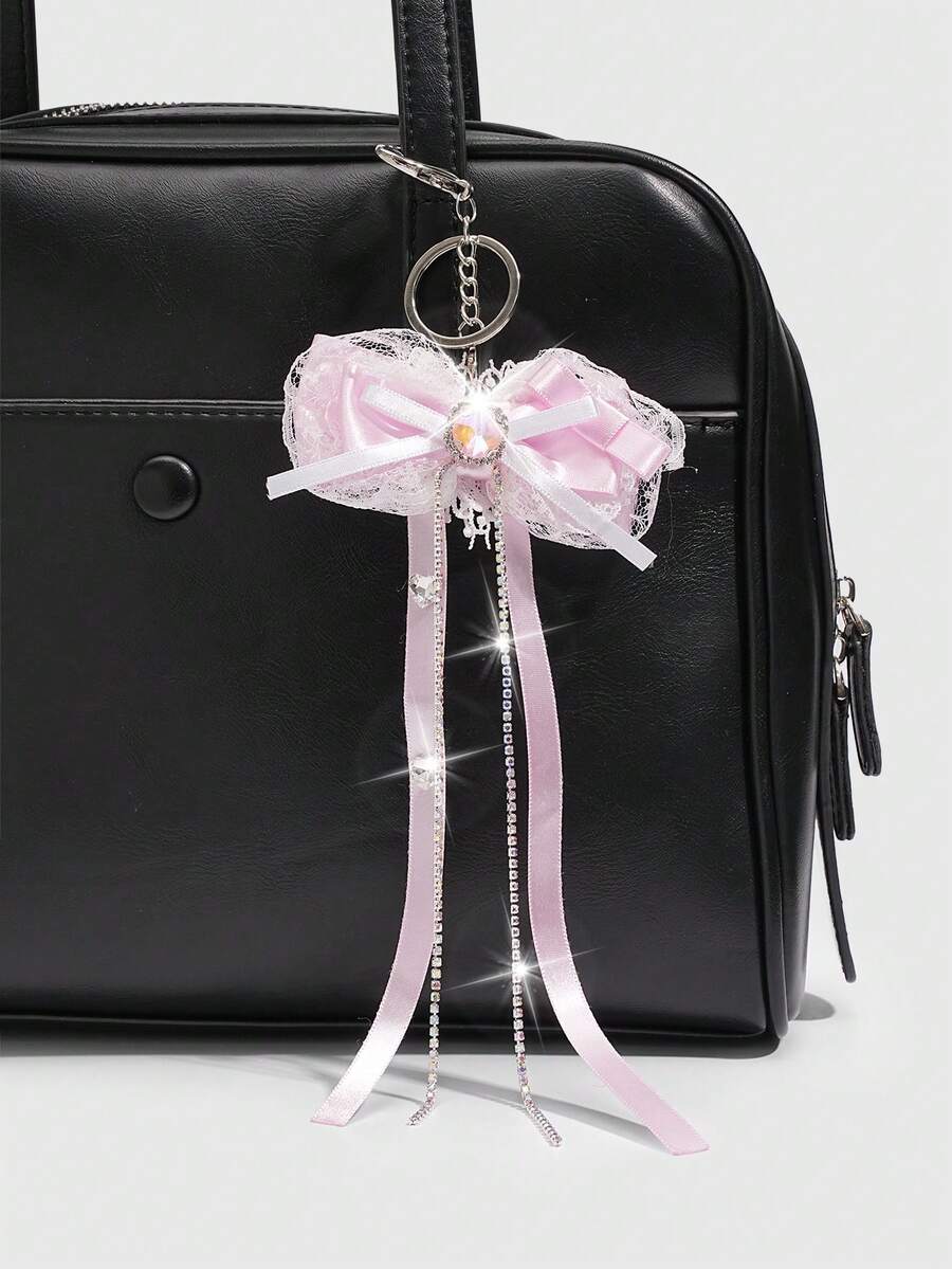 Kawaii 1 Stück süßer rosa Herz Schlüsselanhänger für Mädchen, ein Schleifenband Spitze Herz Taschenbehang, ein Handyanhänger, ein Valentinstags- und Feiertagsgeschenk.