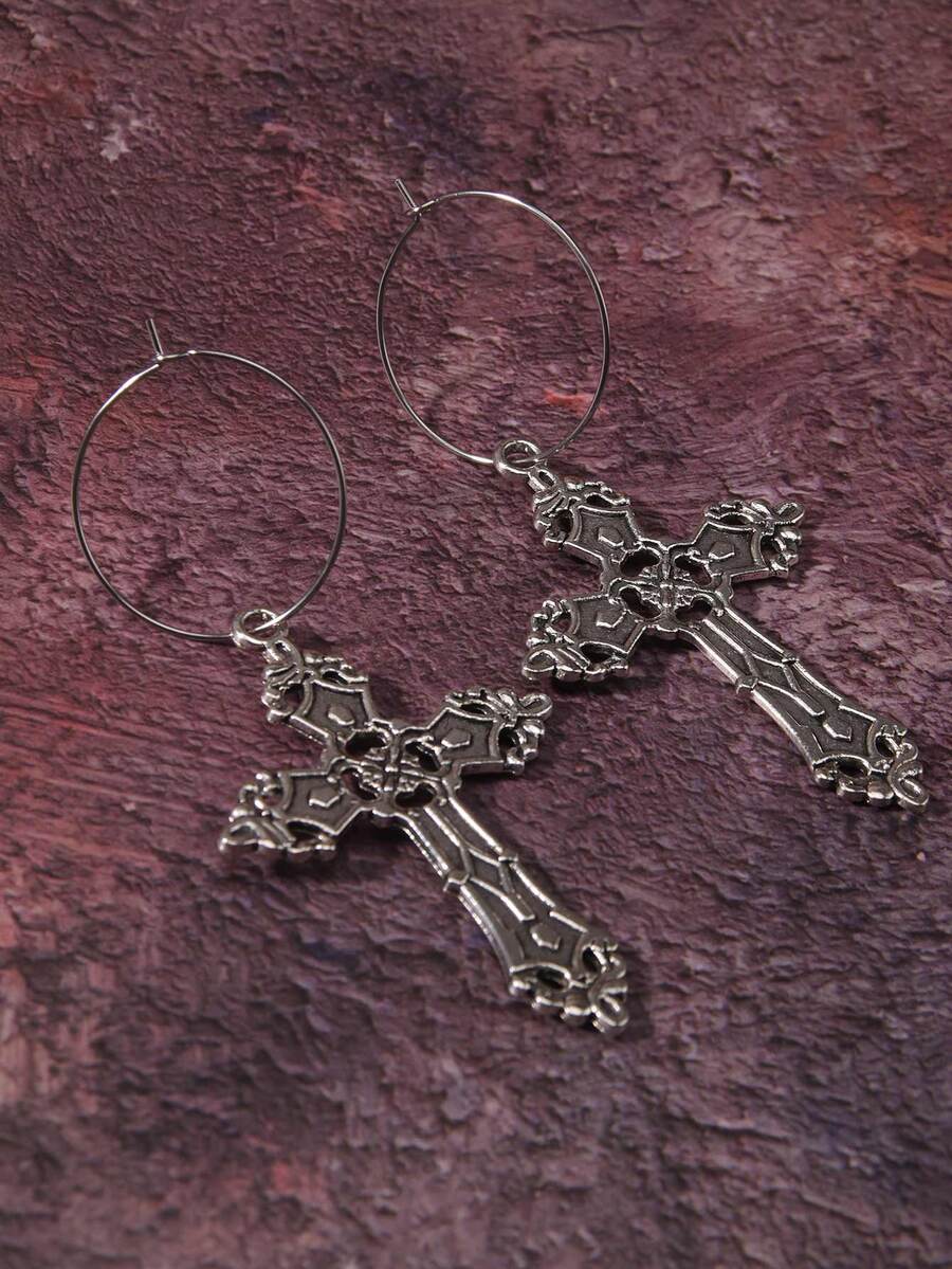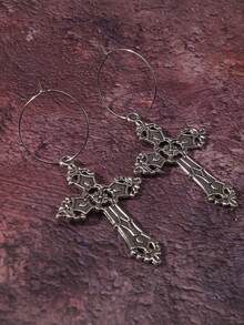 1 Paar Ohrringe mit Vintage, Edelstahl Kreuz Design, Für Frauen Für Tägliche Dekoration