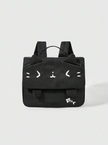 1 Stück schwarzer, süßer und niedlicher Schulstil Rucksack mit Katzenmotiv und Fischgrät-Muster, geeignet für Schule, Reisen, anime-inspiriert