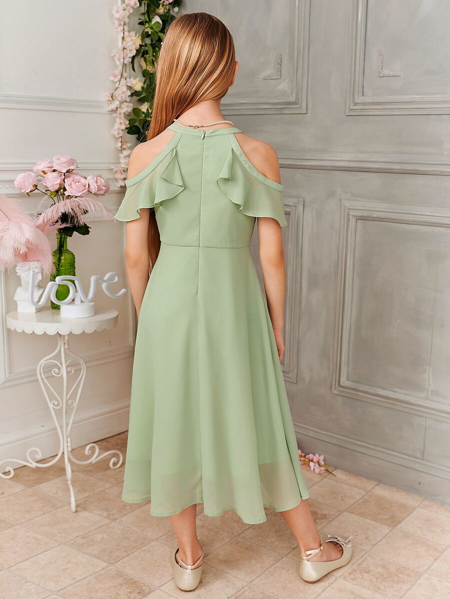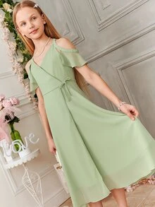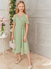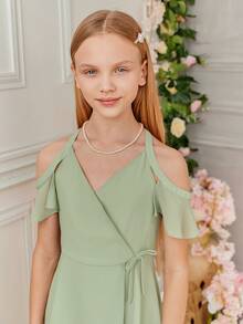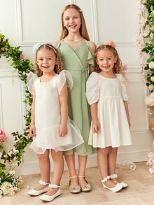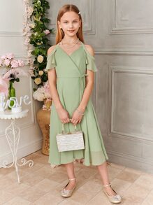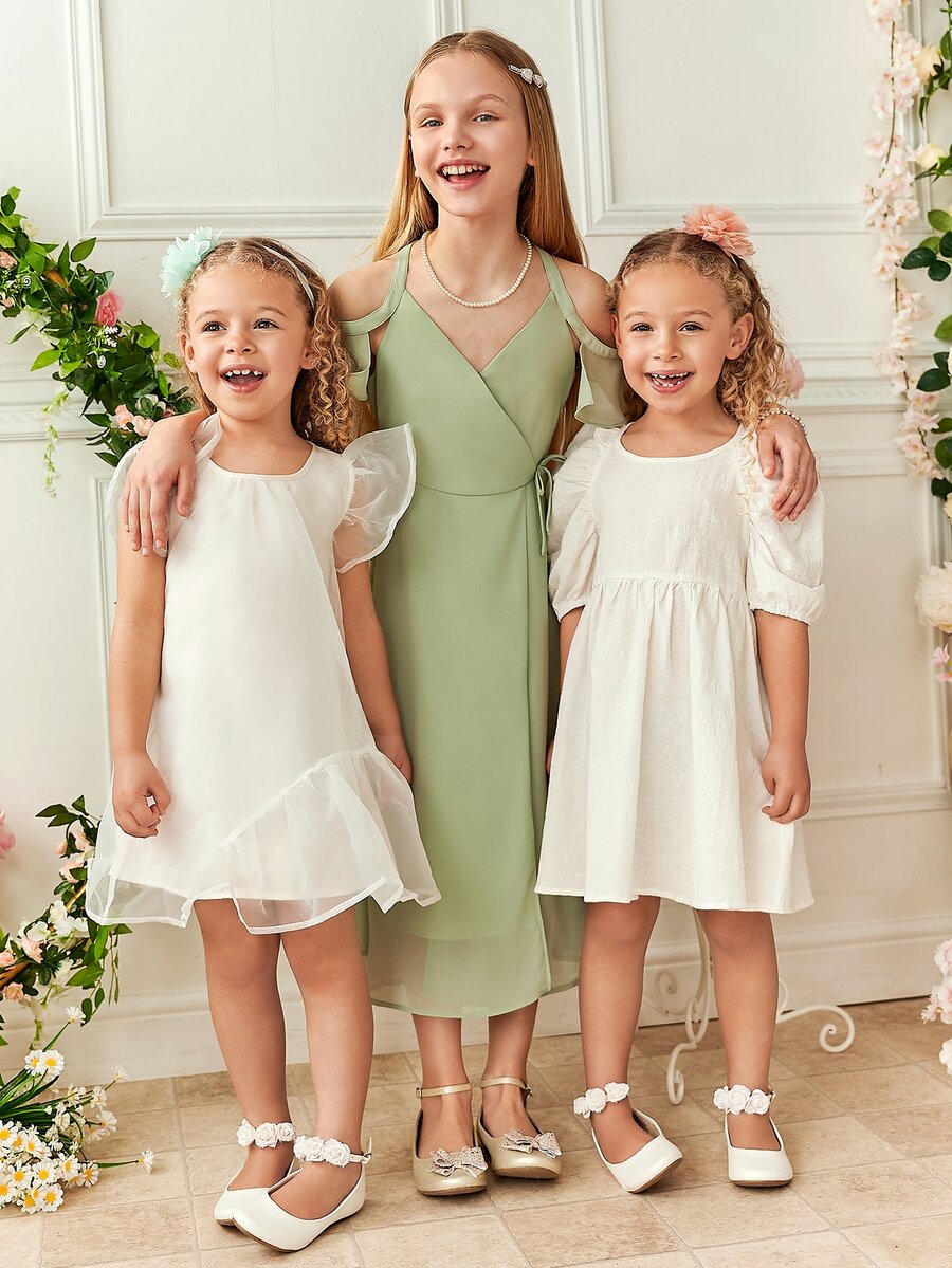 1 Stück Mädchen Kleid mit Chiffon Blume Design, Wickel vorne