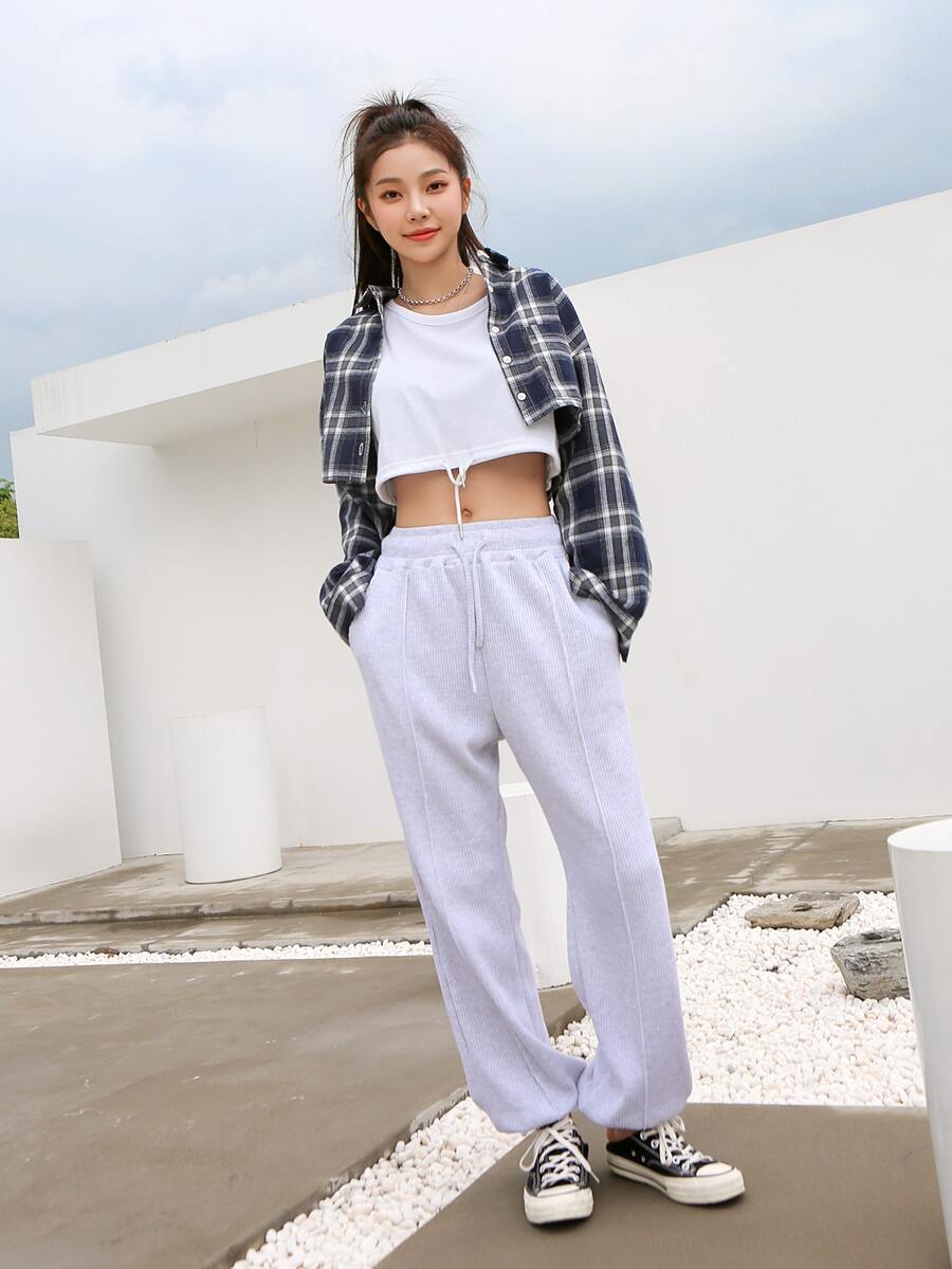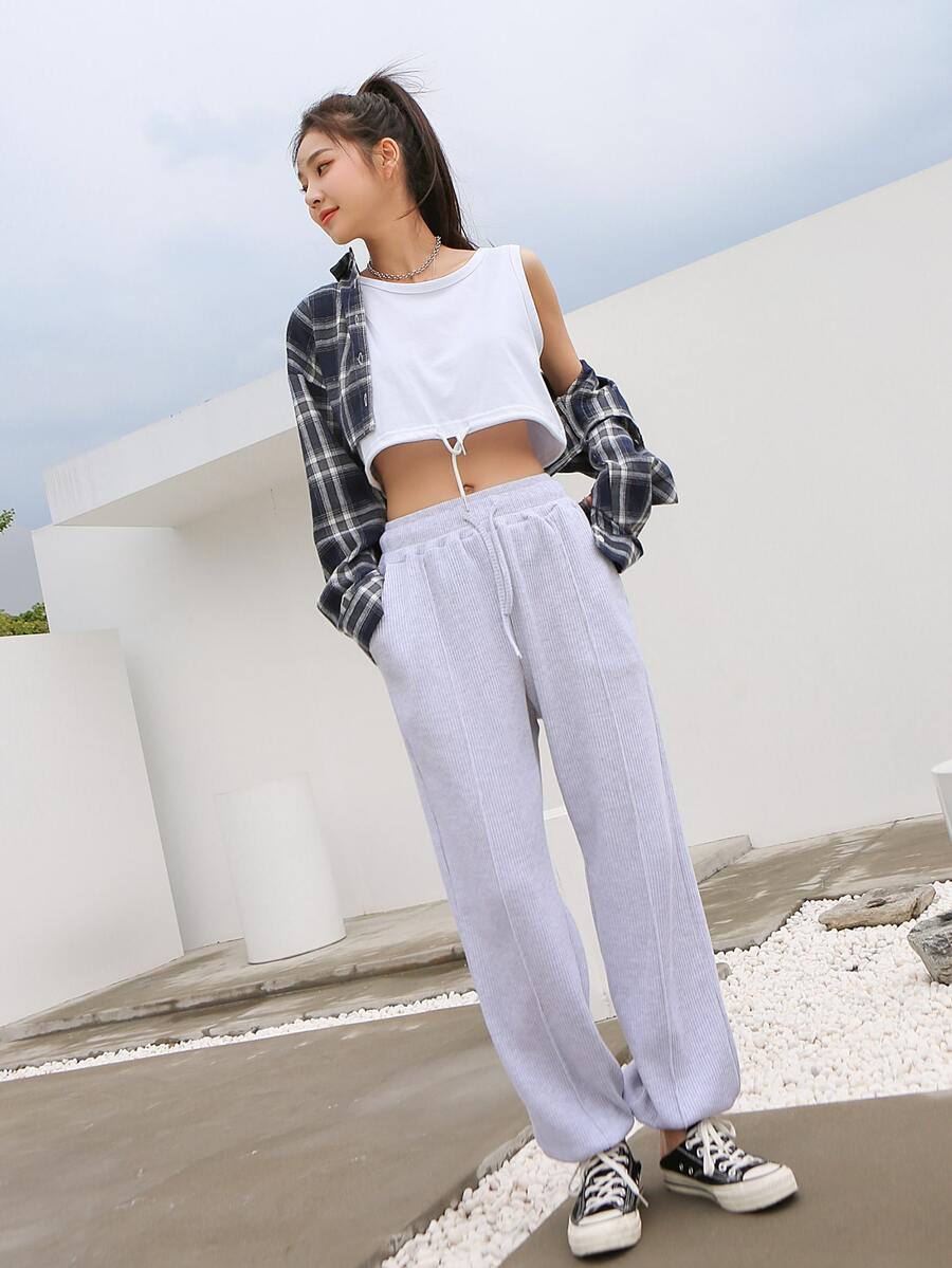 1 Stück Crop Tank Top mit Schnürzug am Saum
