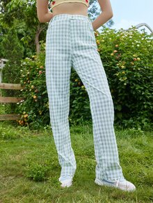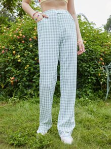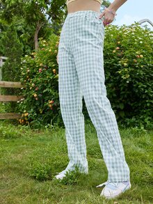 1 Stück Hose mit Gingham Muster, schrägen Taschen