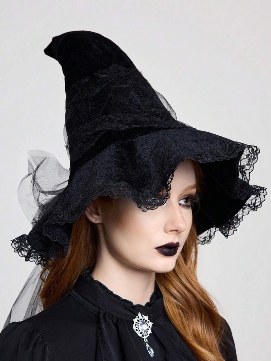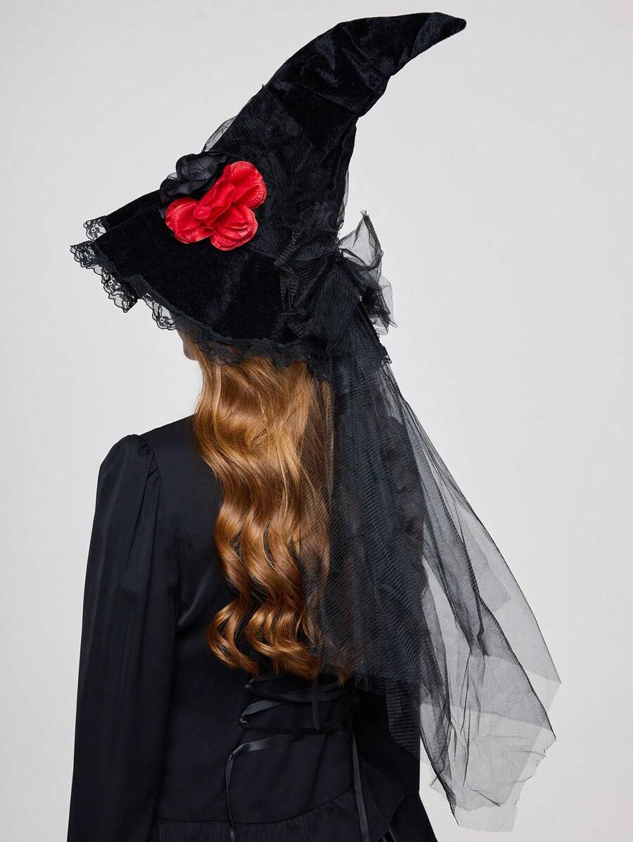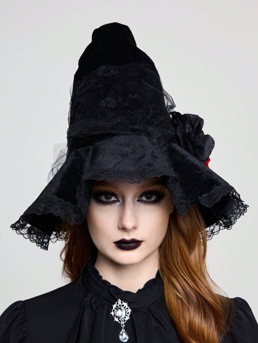 Goth 1 Stück gotischer Barock Hut mit Kunstblumen & Schleier, Halloween Kostüm Kopfschmuck