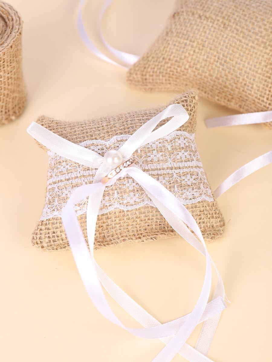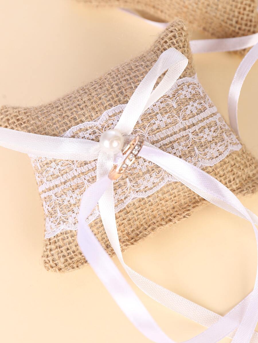1 Stück Spitze Sackleinen Ehering Trägerkissen
