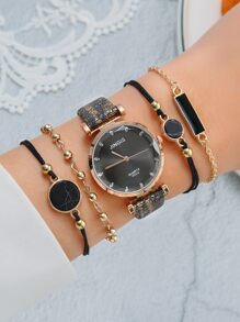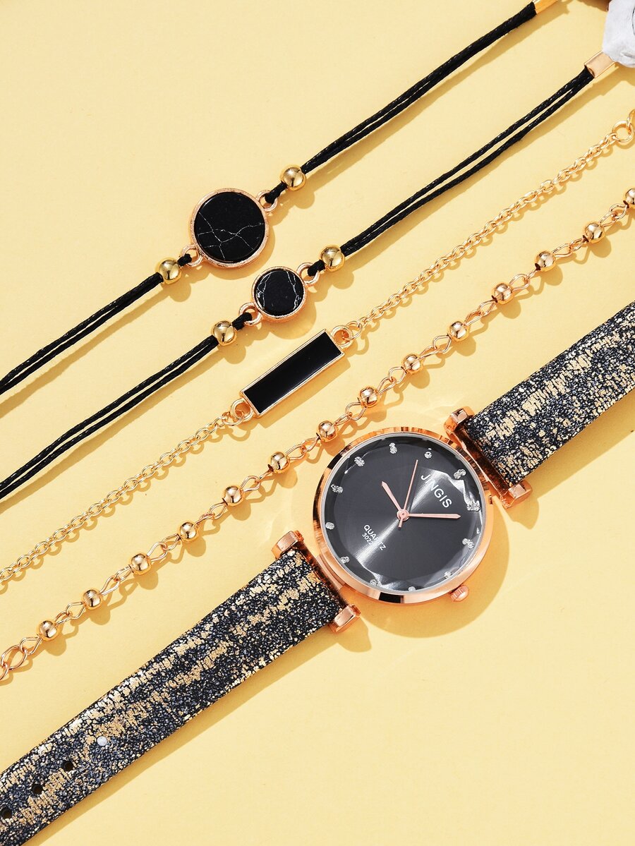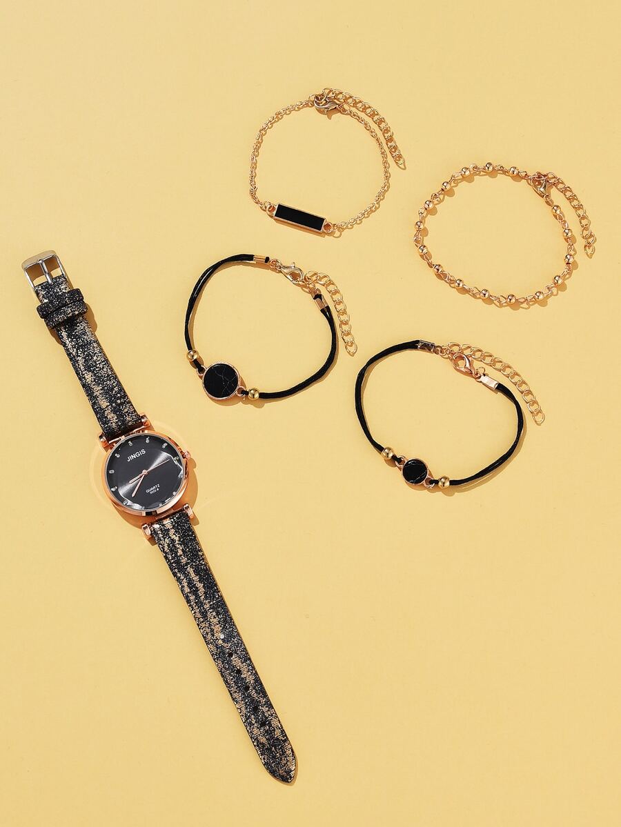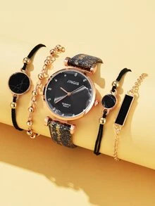 1 Stück Uhr mit Strass Dekor & 4 Stücke Armband