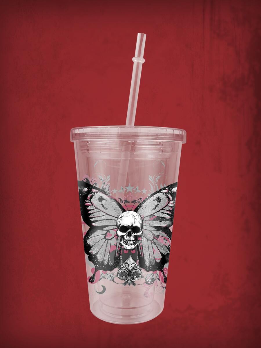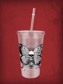 1 Stück Becher mit Skelett und Schmetterling Muster, moderne PS Flasche mit Stern und Schmetterling Muster und Deckel für Schule und Büro