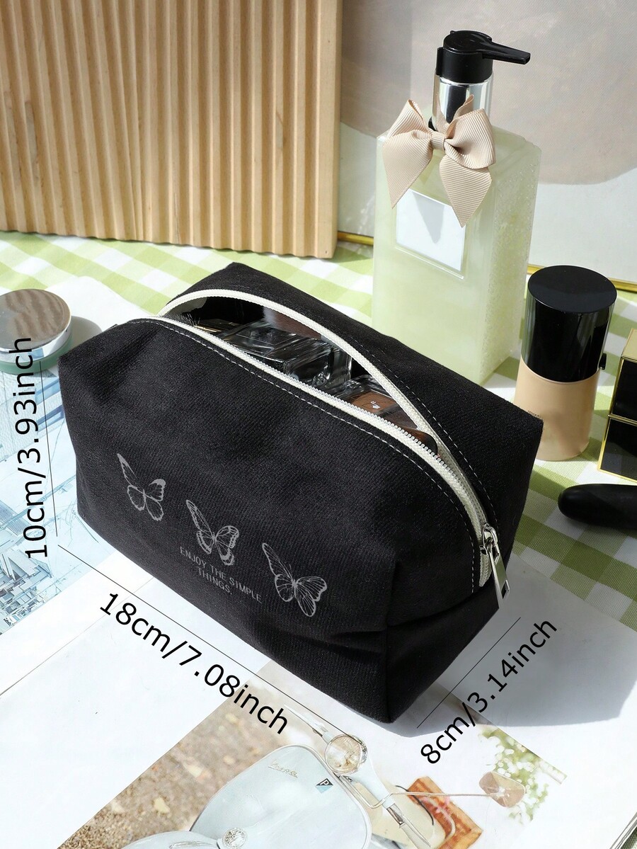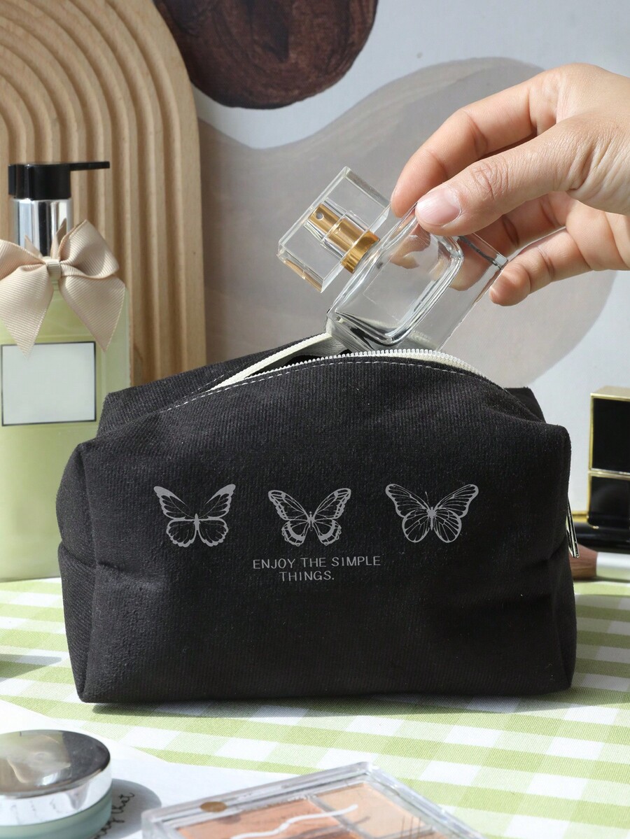 1 Stück Kosmetiktasche mit Buchstaben Schmetterling Muster, tragbar