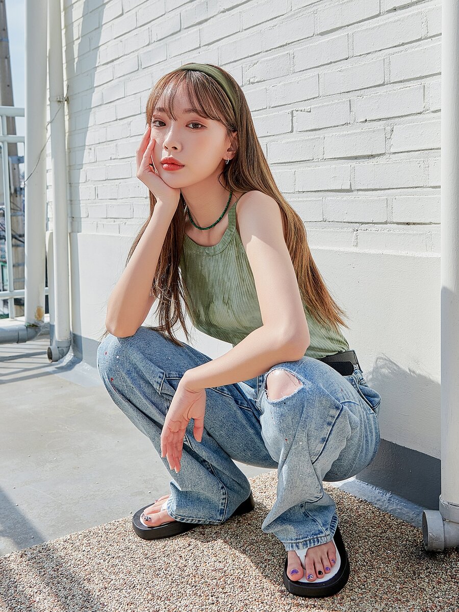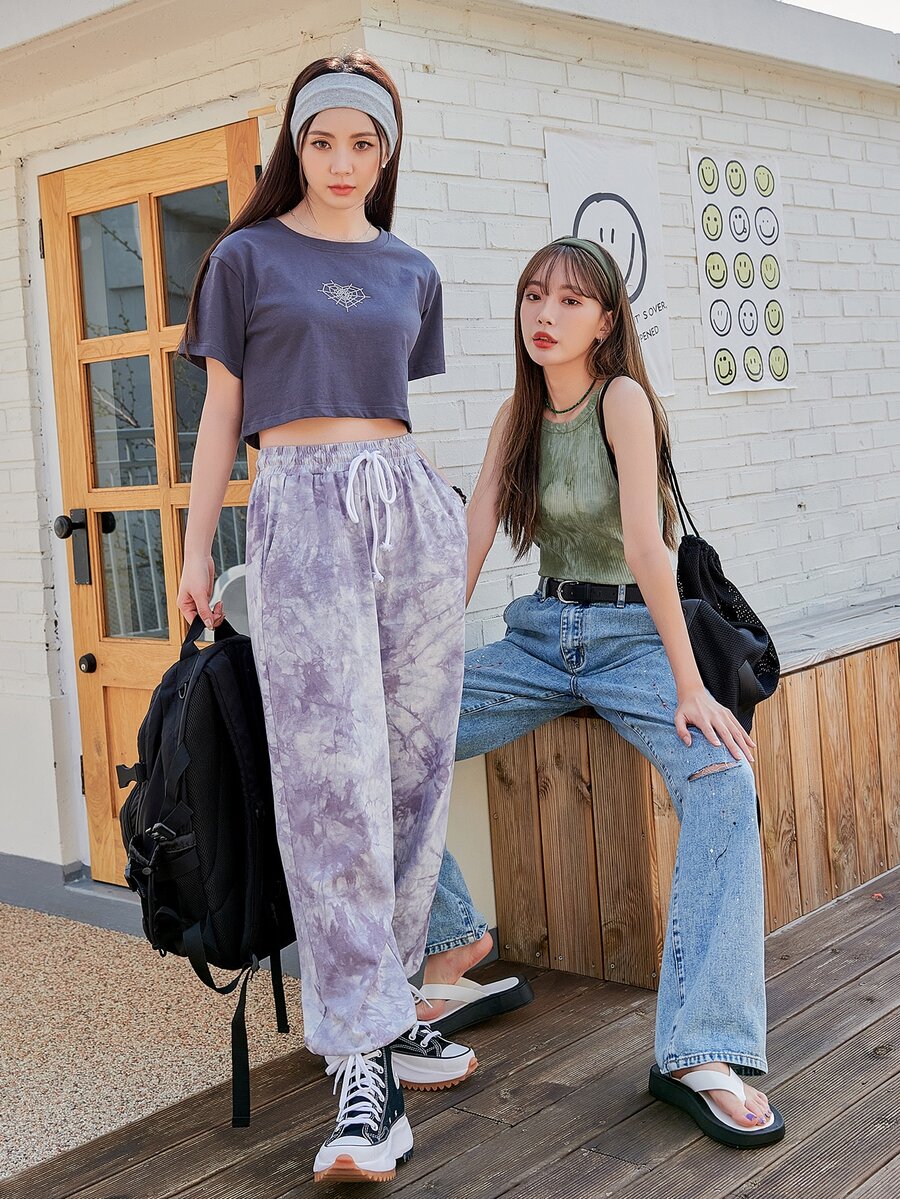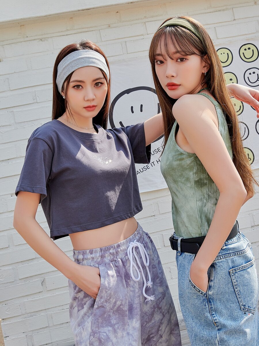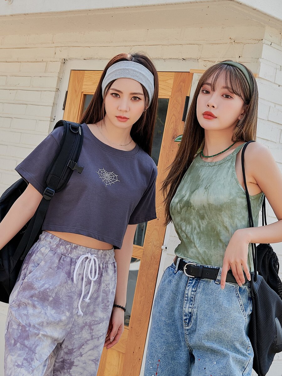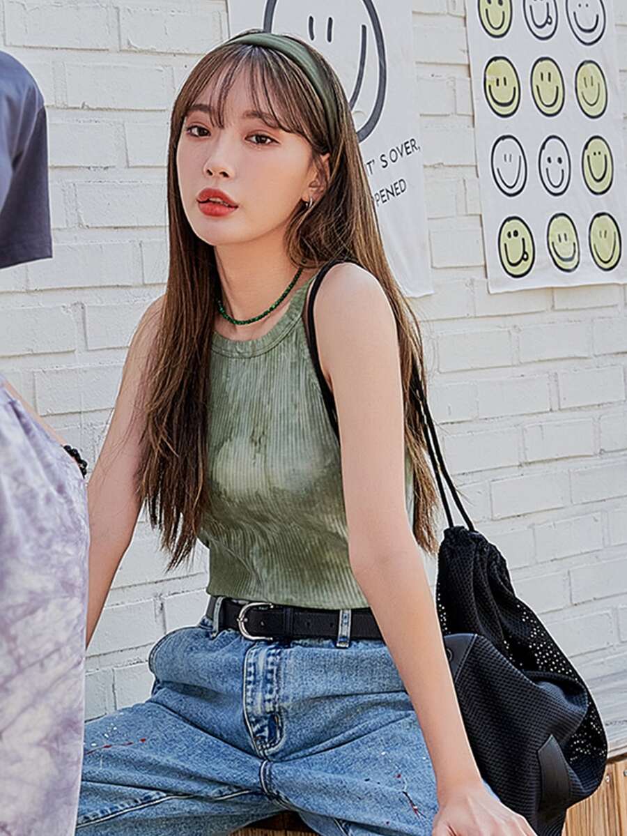 1 Stücke Rippenstrick Top mit Batik und Neckholder