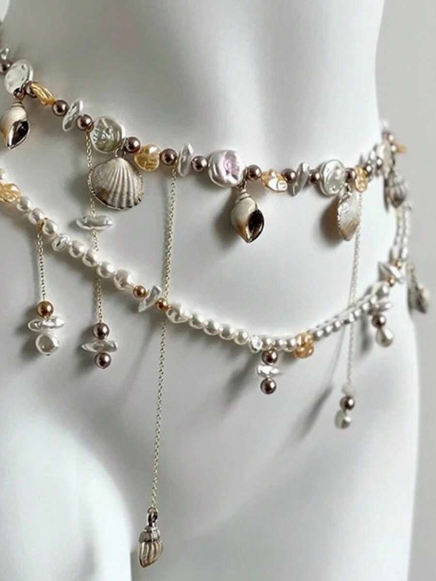 1 Stück Damen Strandurlaub Stil Doppelschicht Barock Perle Muschel Konchen Quaste Taillenkette
