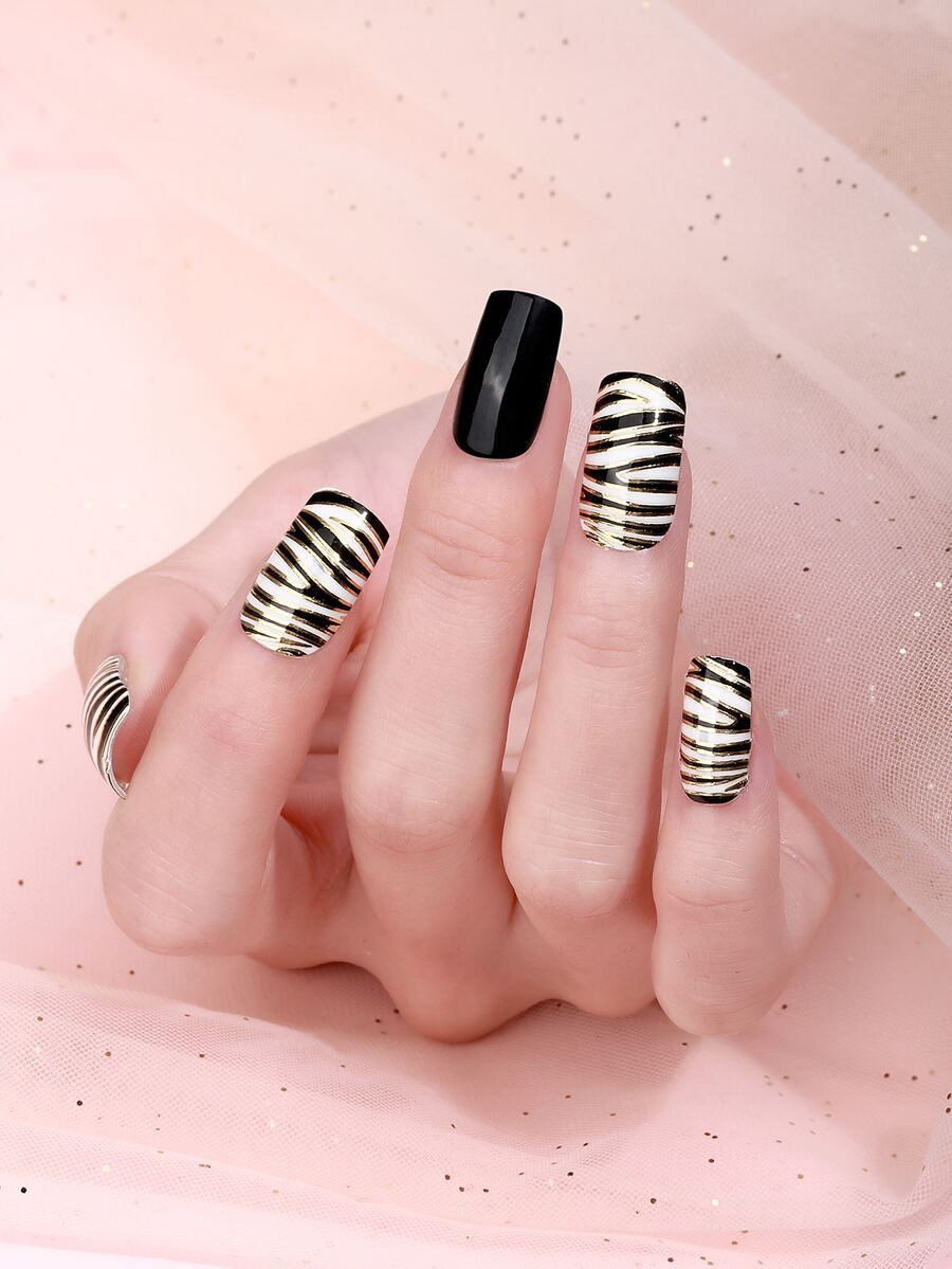 1 Blatt Nagelkunst Aufkleber mit Zebra Streifen & 1 Stück Nagelfeile