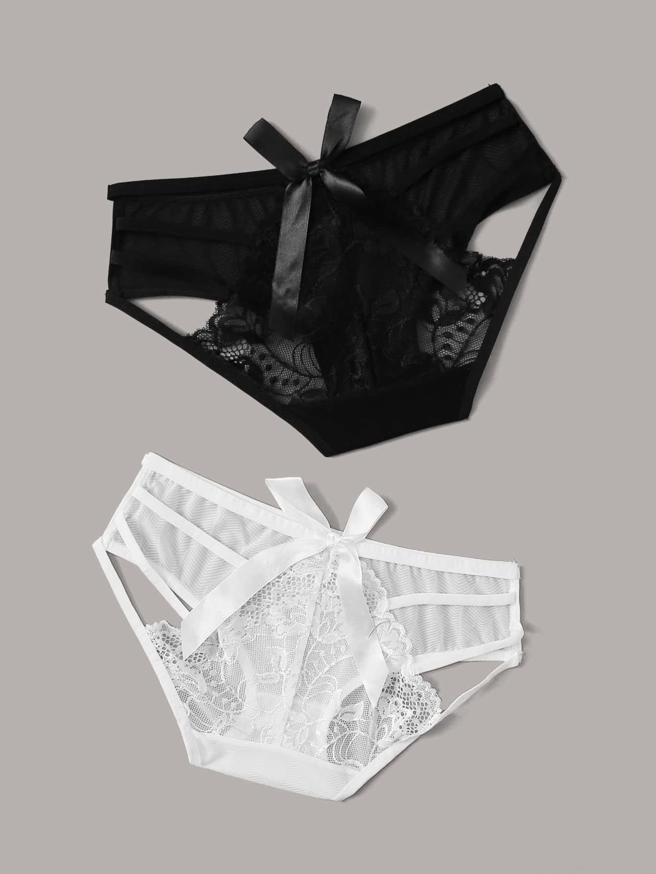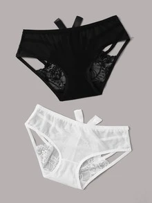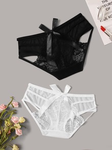 2 Sets florales Seidenhöschen-Set mit Spitzen-Geschirr