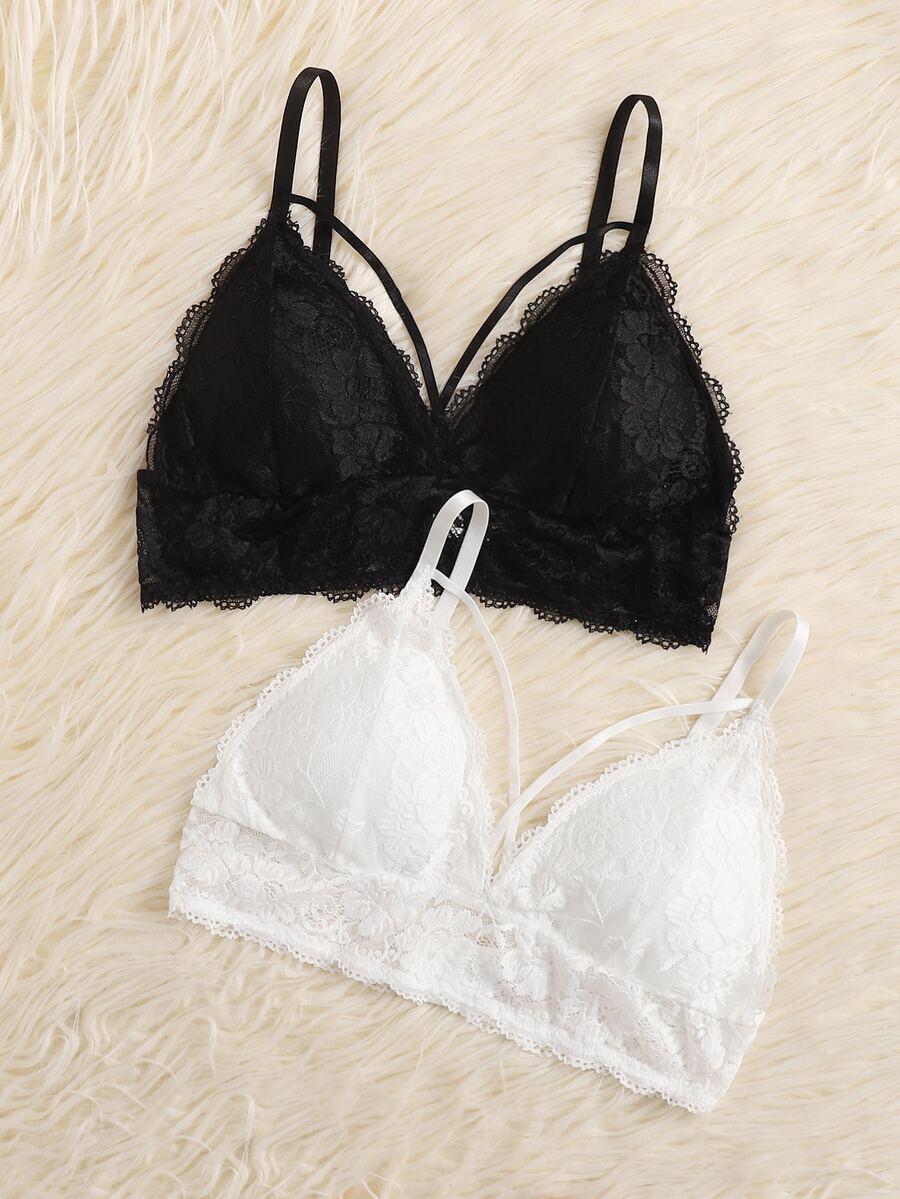 2 Packungen Blumen Spitzen Dreieckiger BH Set