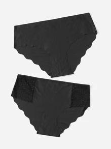 2er Pack Große Größen Nahtlose Slip-Sets mit Rüschensaum