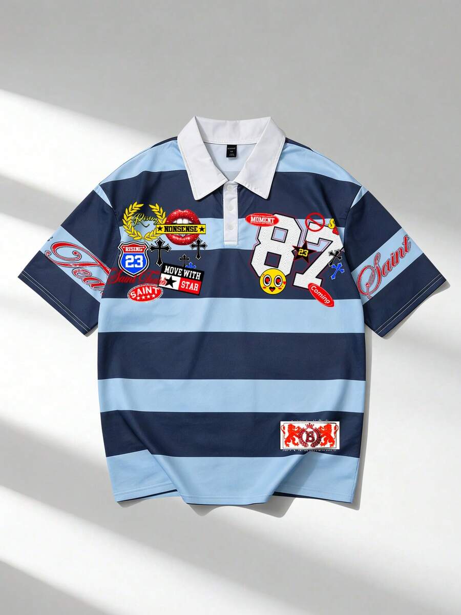 2026 Herren Lässig Kurzarm Polokragen T-Shirt, College Stil bedrucktes gestreiftes Top