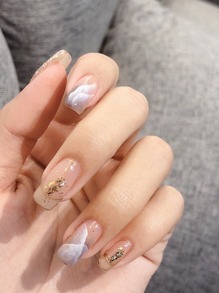 24 Stücke Künstliche Nägel mit Glitzer und Marmor Muster