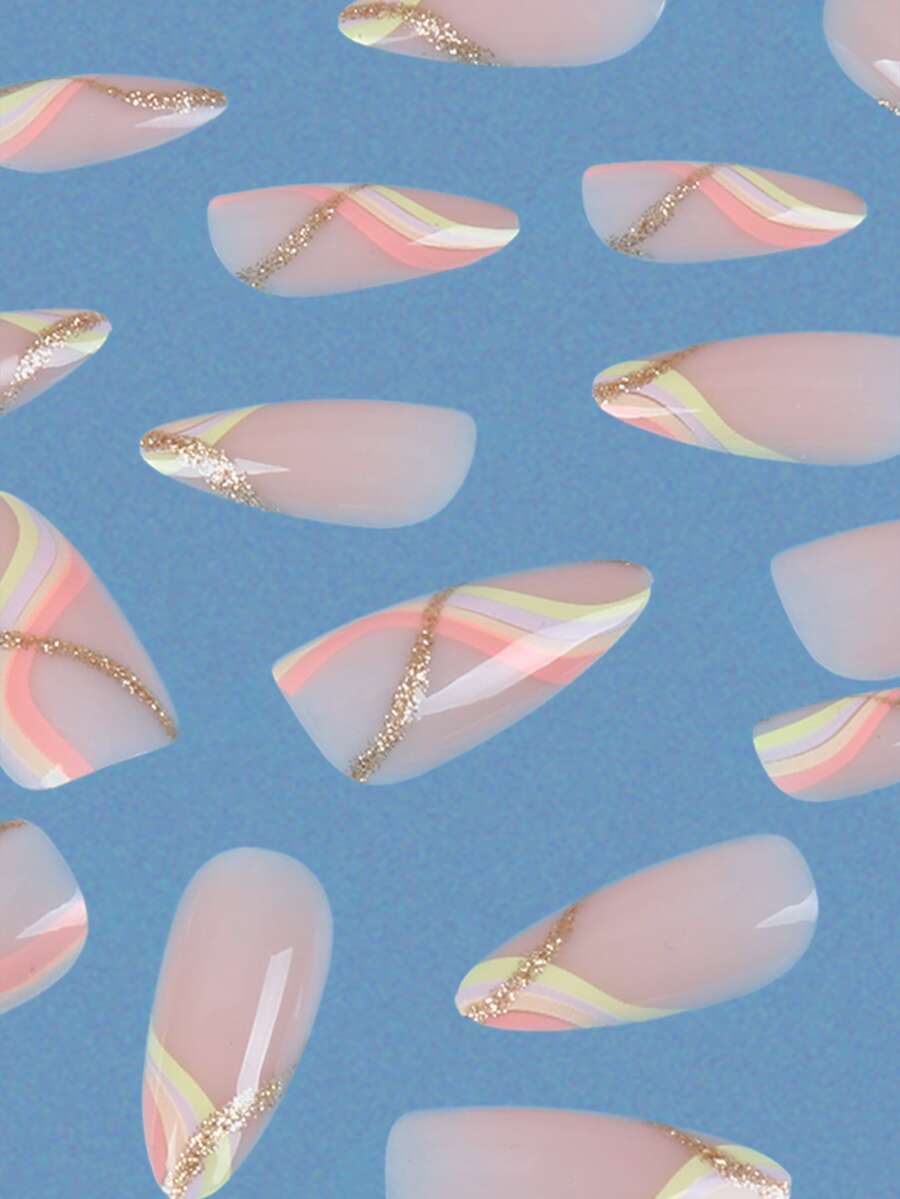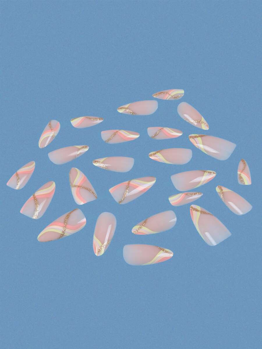 24 Stücke Lang Mandel Kunstnagel & 1 Blatt Klebeband