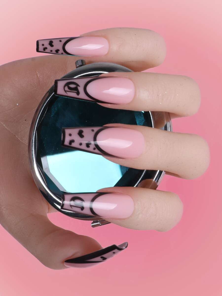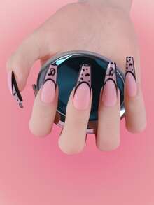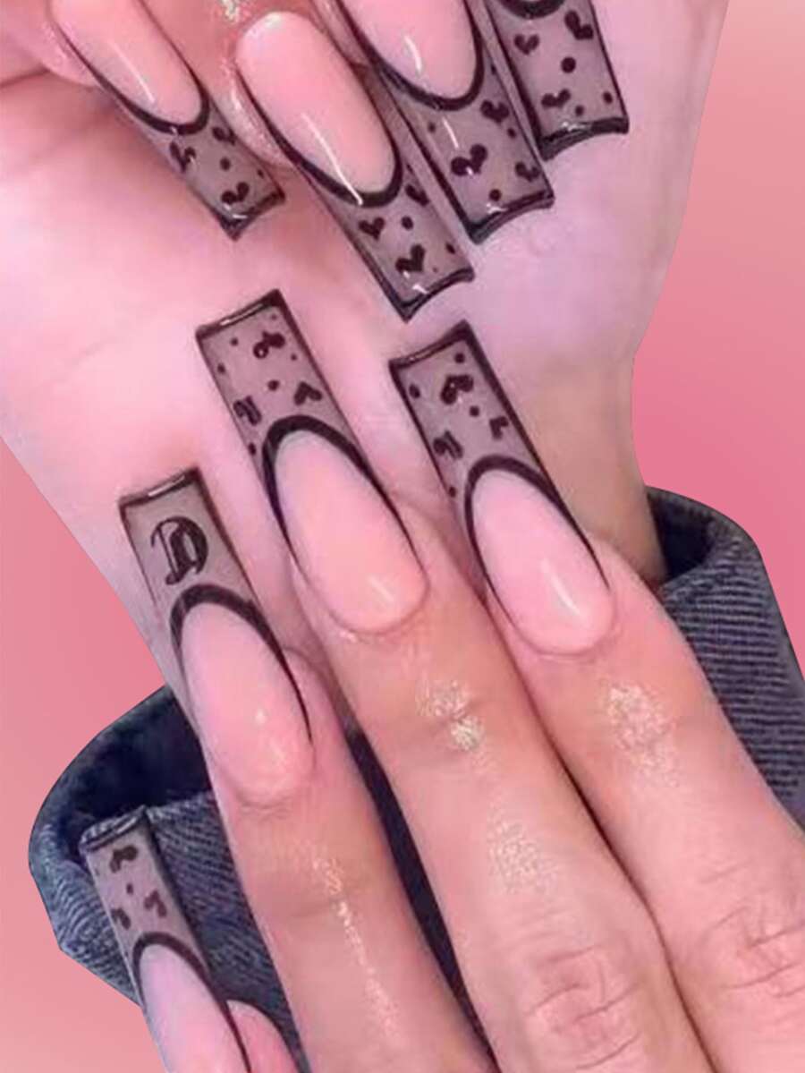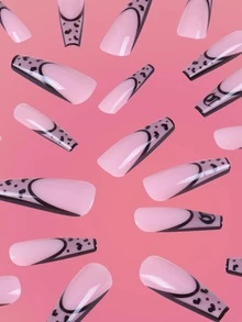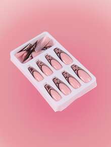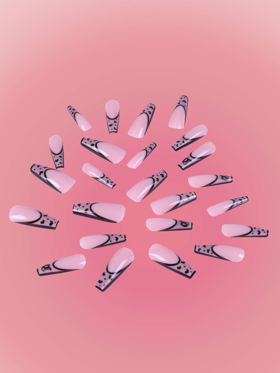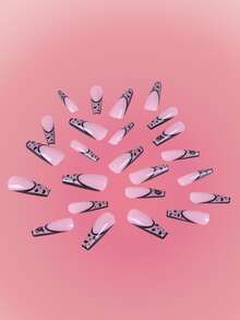 24 Stücke Lang Quadrat Kunstnägel mit Herz Muster & 1 Blatt Band