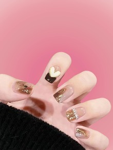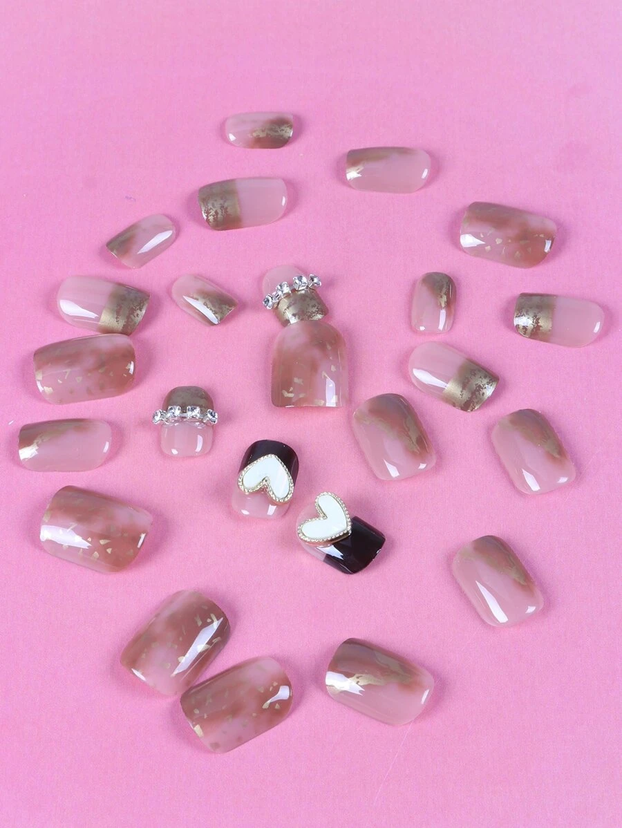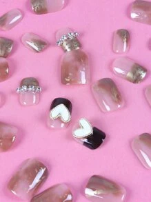 24 Stücke Kurz Quadrat, Herz Dekor, Kunstnägel & 1 Blatt Band