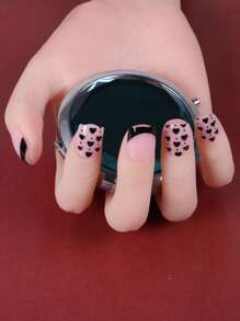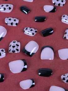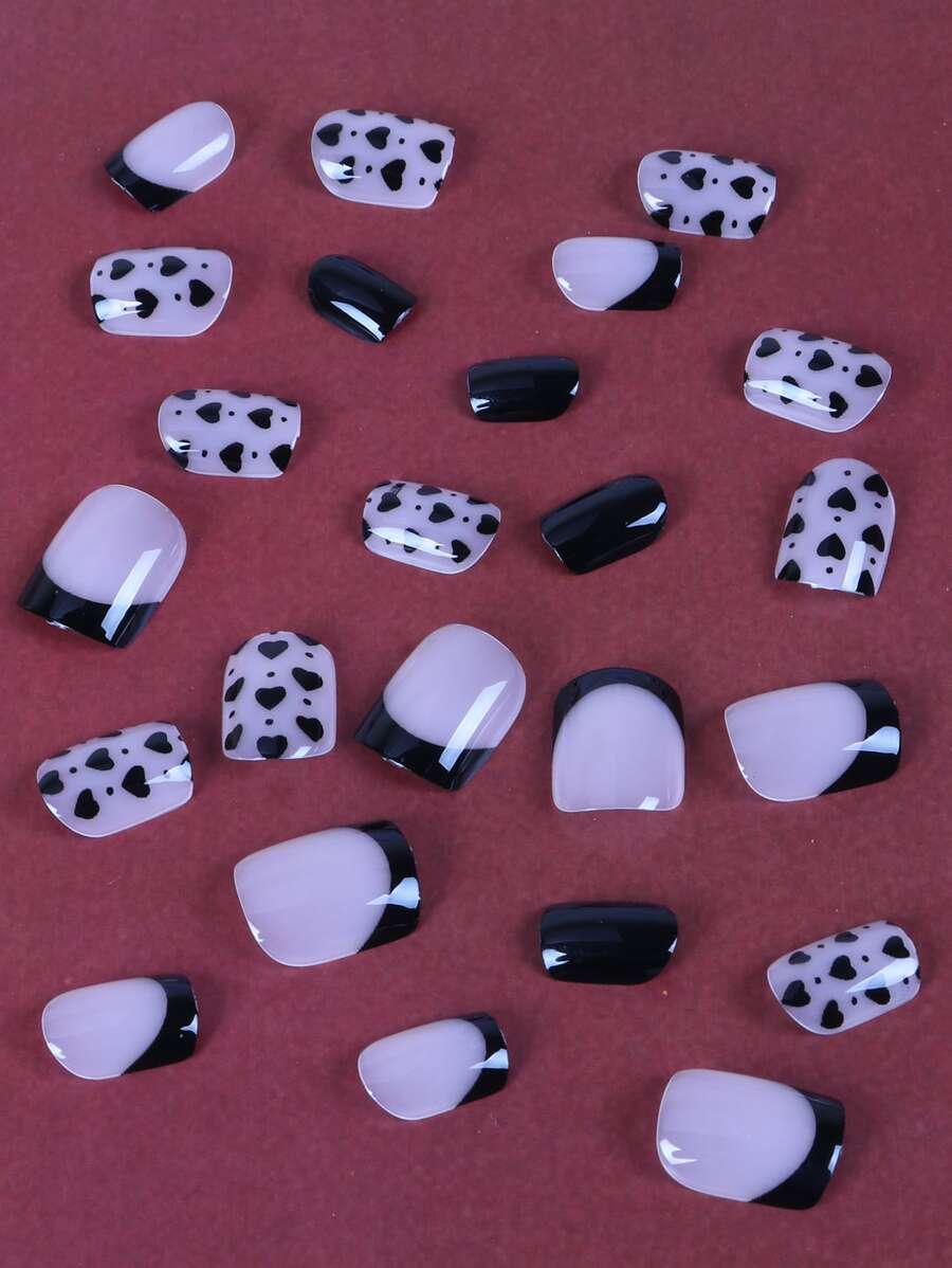 24 Stücke Kurz Quadrat, Herz Muster, Kunstnägel & 1 Blatt Klebeband