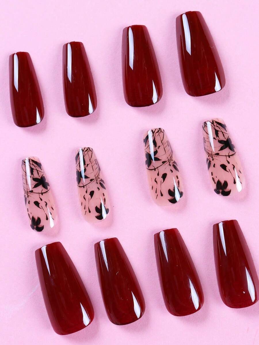 24 Stücke/set Lange Wasser Tinte Neue Sprösslinge Künstliche Nägel Mit Gelee Kleber Gesendet (auf Lager)