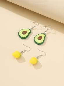 2 Paar Ohrringe mit Avocado & Lemone Design