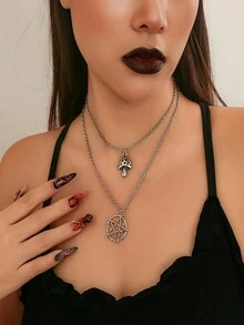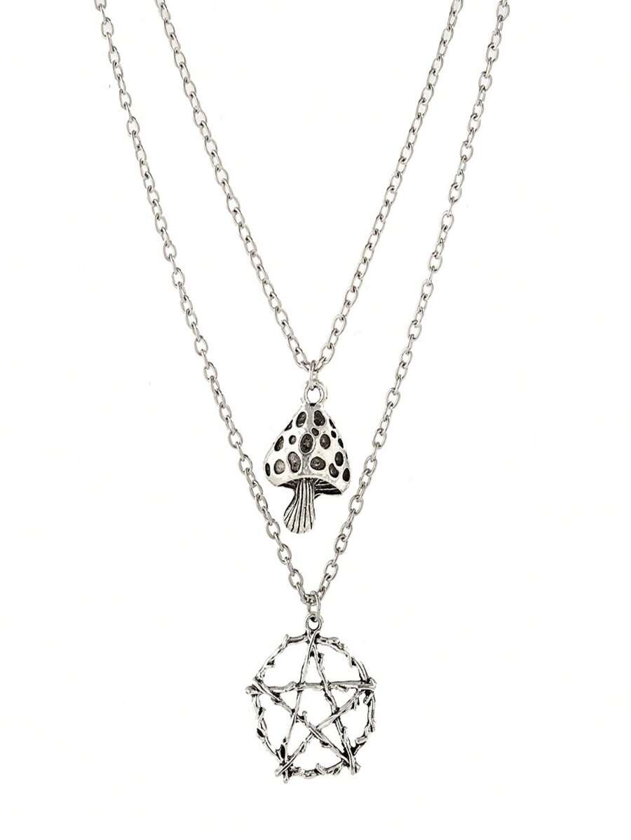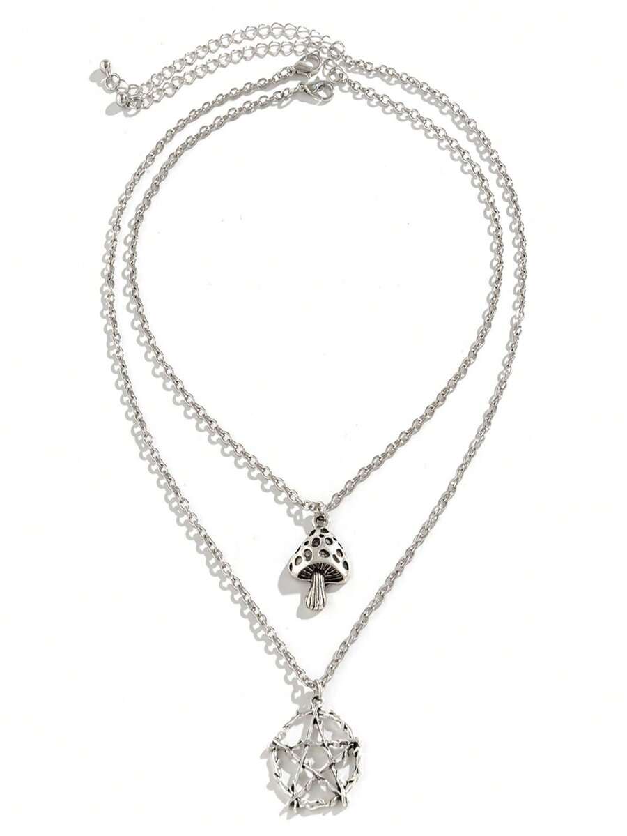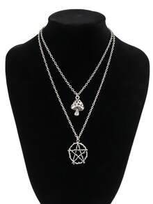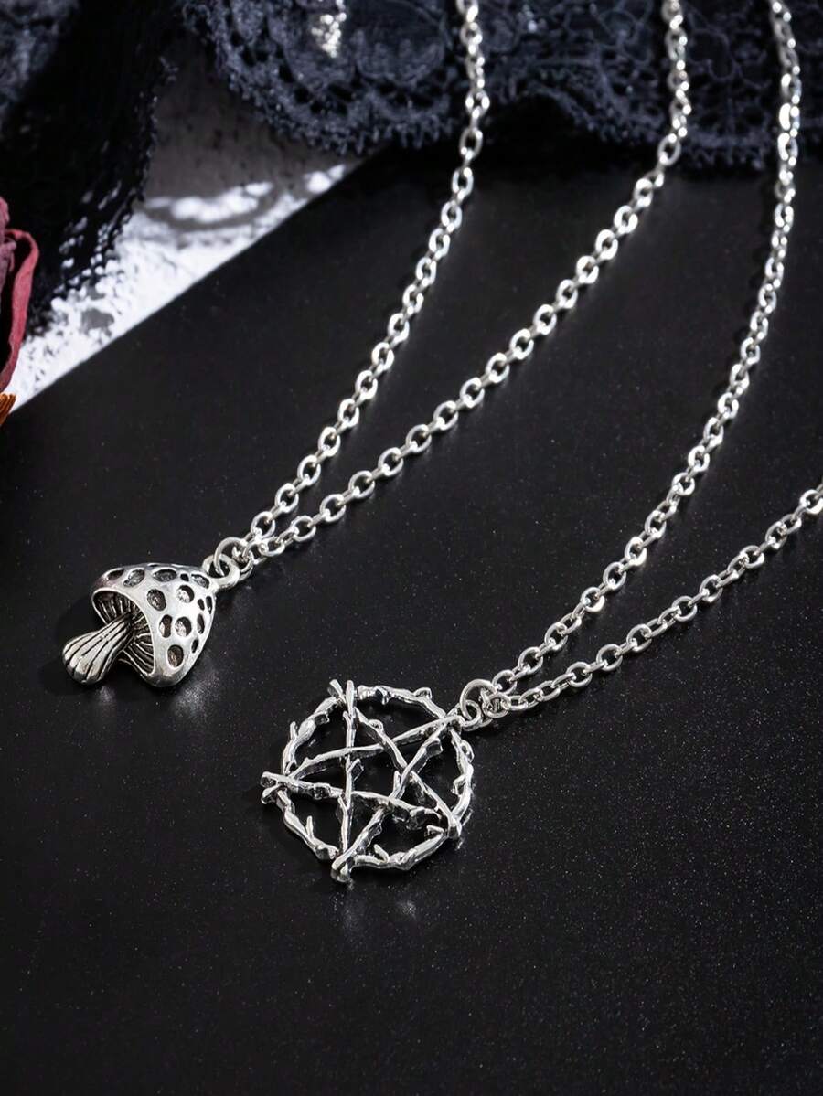 Goth 2 Stücke modische Zinklegierungs-Pilz- und Stern-Charm-Halskette für Frauen zur täglichen Dekoration