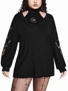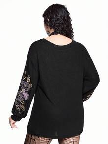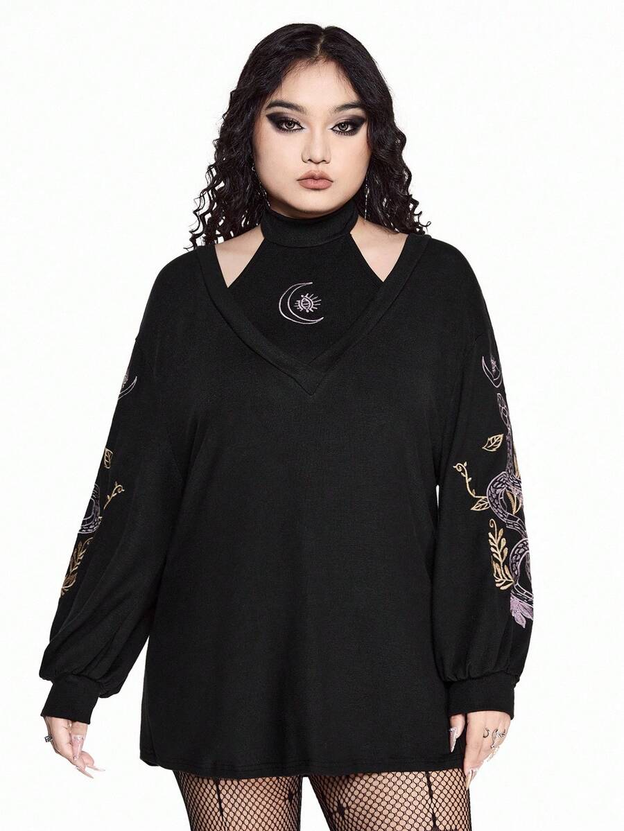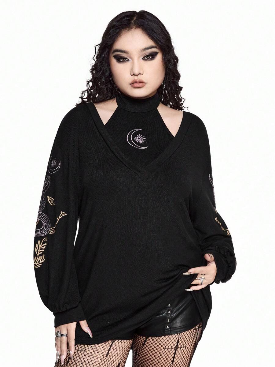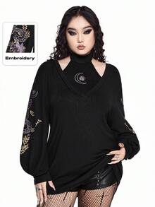 2 Stücke Gothic Schlangenhaut Blumen Stickerei Design Damen Set, Trägerhemd + Top