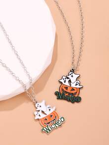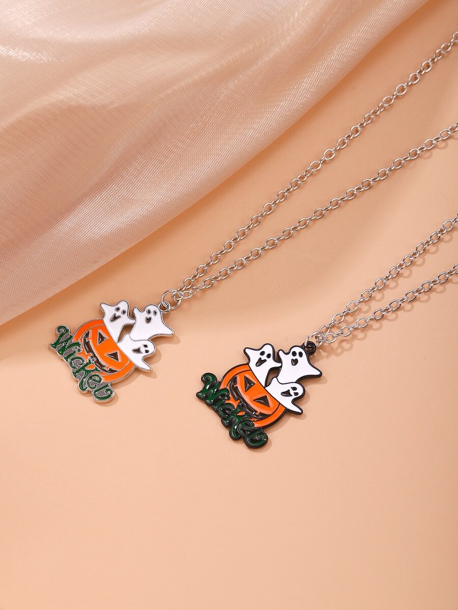 2 Stücke Halskette mit Halloween Geist & Kürbis