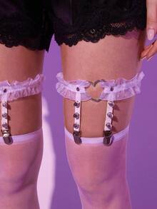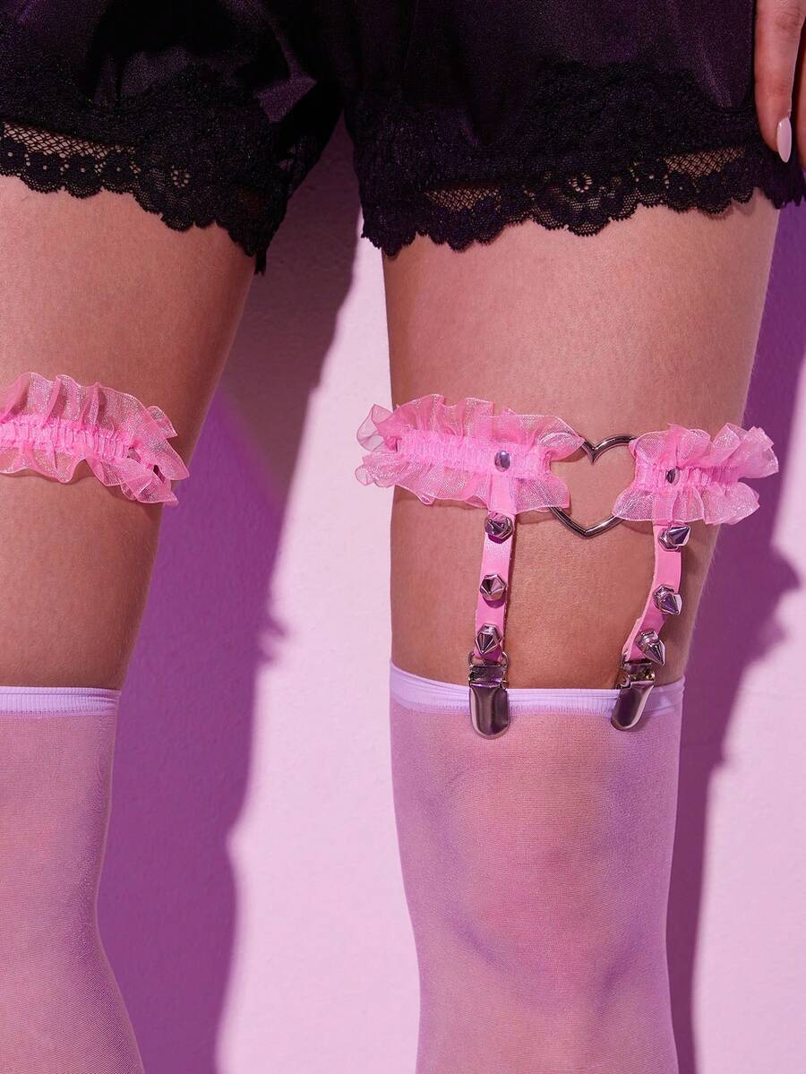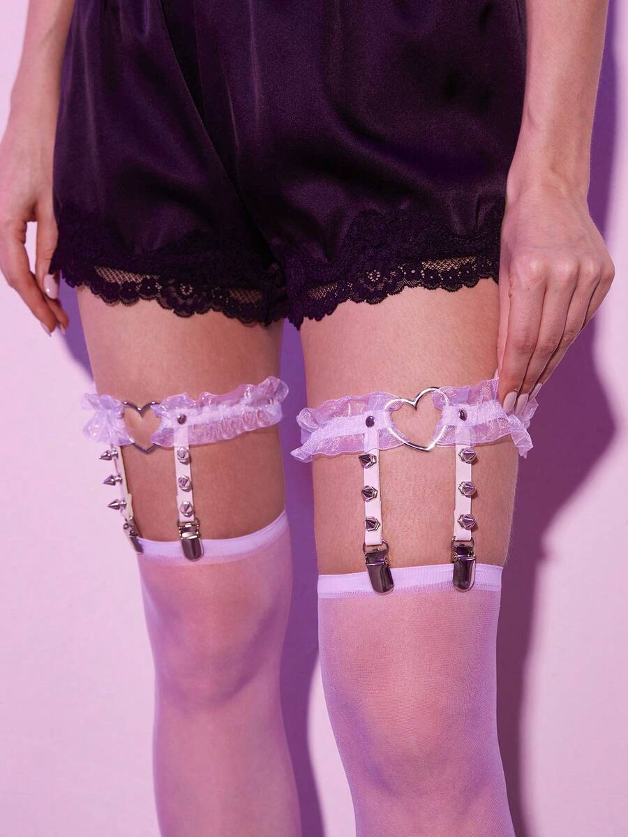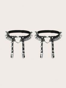 2 Stück Herz- und Nieten-Dekor Spitzen-Strumpfhalter-Geschirr für Halloween, Valentinstag