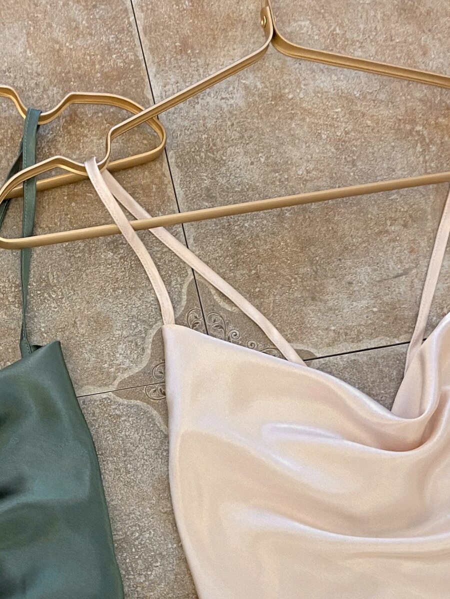 2 Stück Satin Schlafkleid mit Schnürung und offenem Rücken, luxuriöse Loungewear