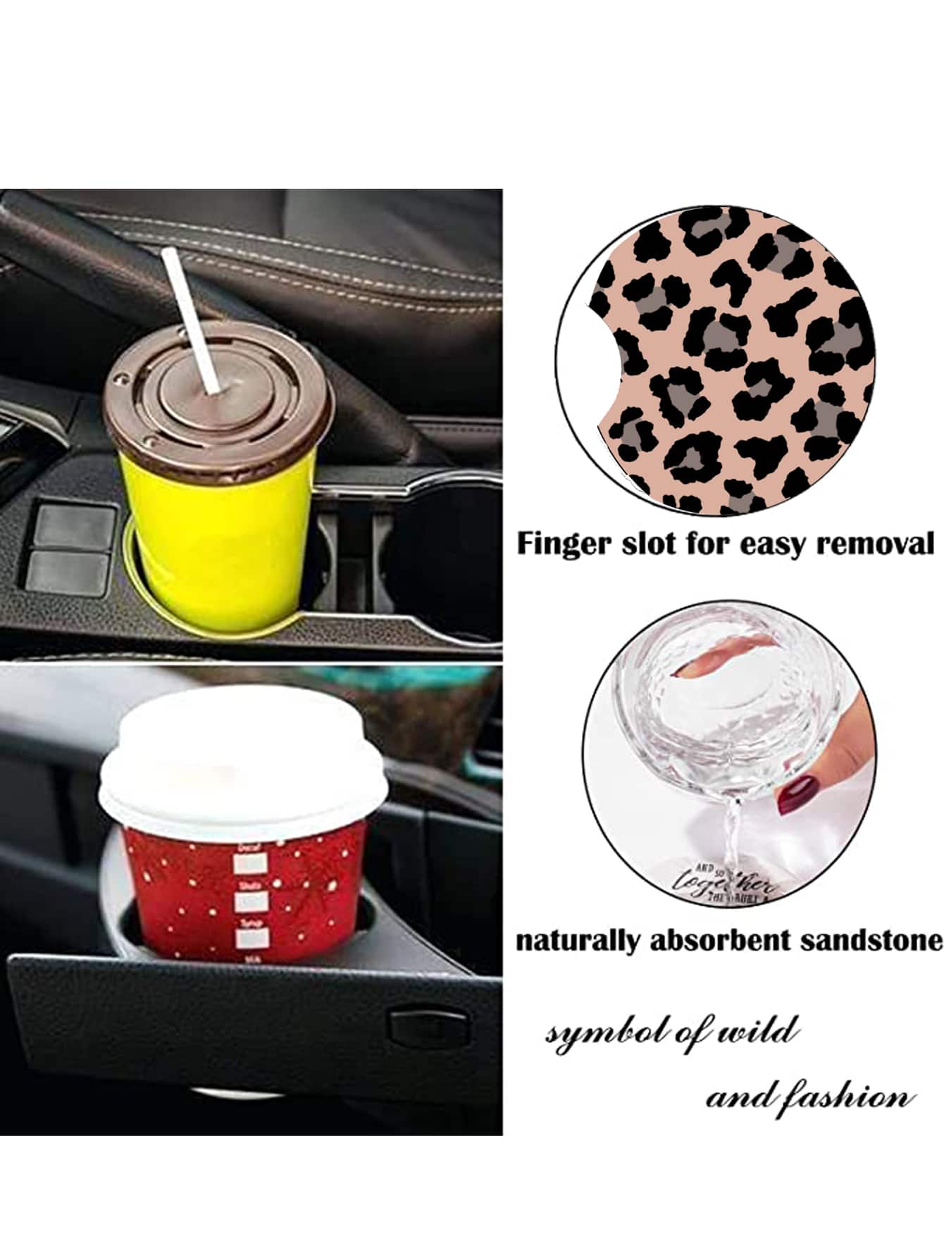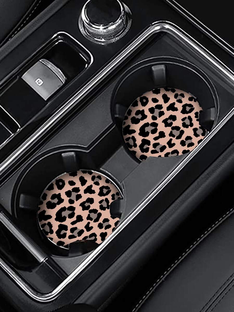 2 Stücke Auto Untersetzer mit Leopard Muster