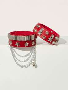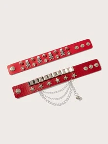 Grunge Punk 2 Stücke Armband mit Schädel & Nieten Dekor