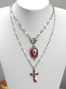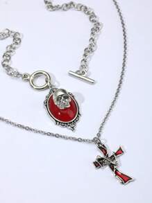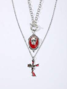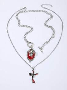 2 Stücke Vintage Gothic Halloween Kreuz Grabstein Skelett Kletterkreuz Skelett Frauen Halsketten-Set