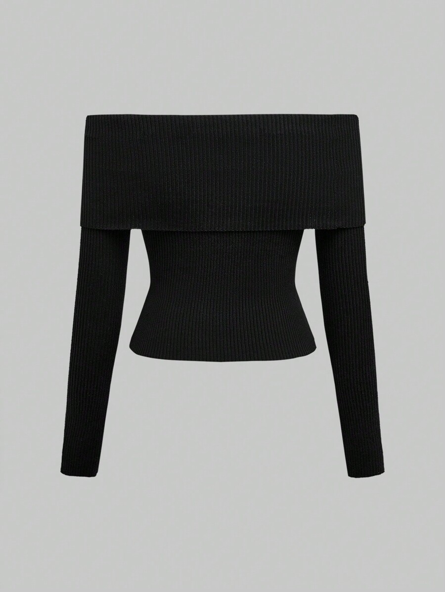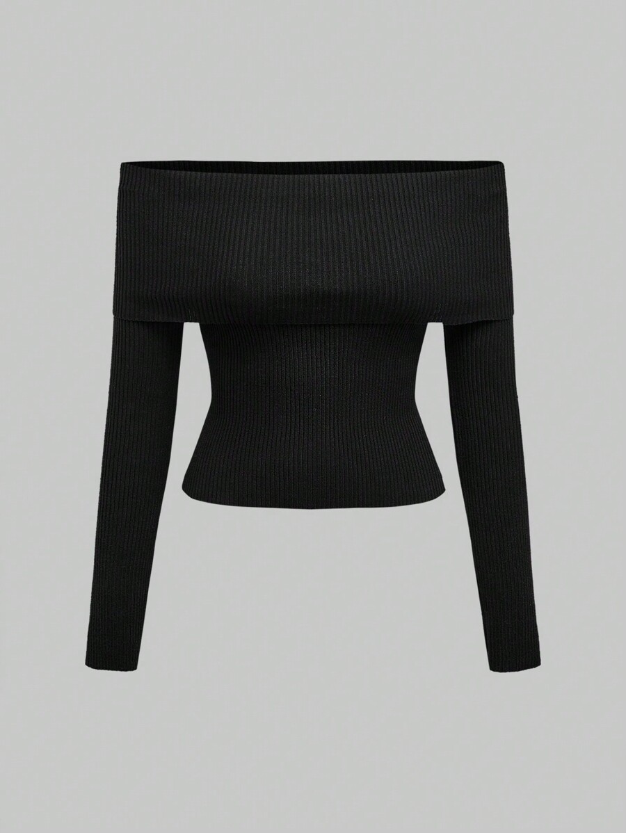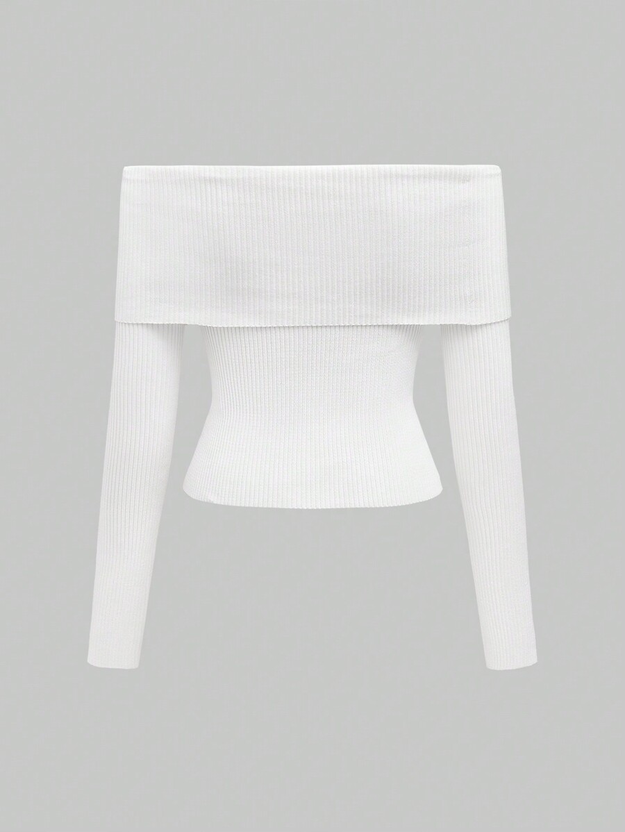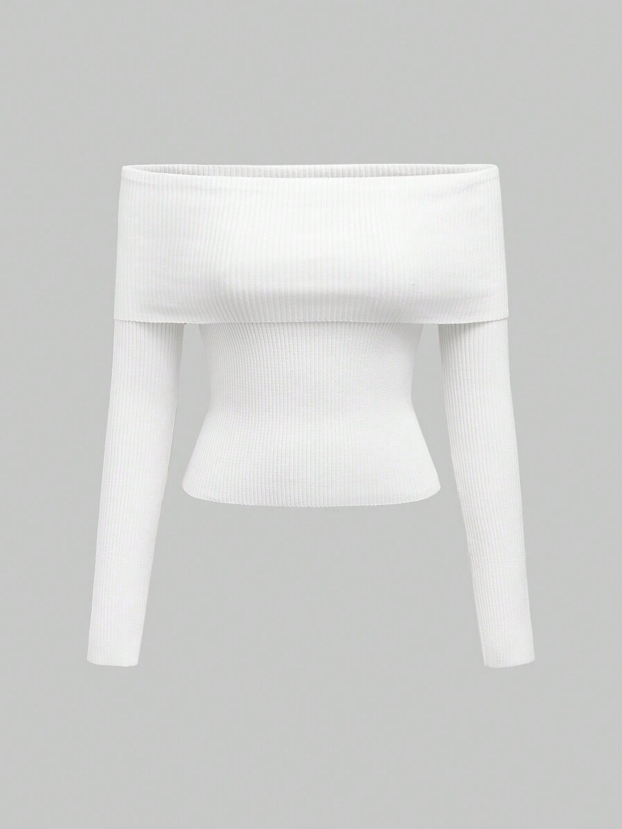 2 Stücke Damen eng anliegender Off-Shoulder Langarm Pullover Set
