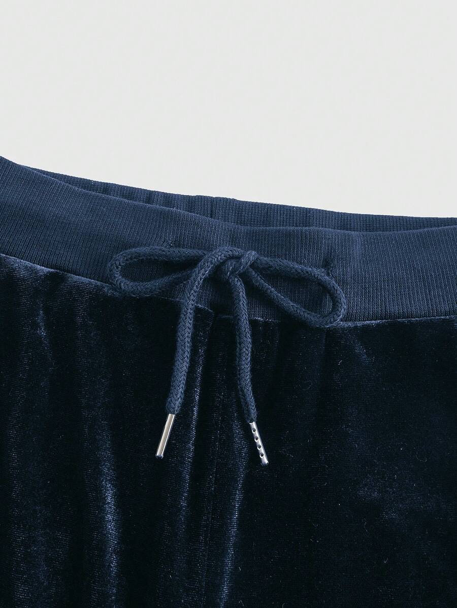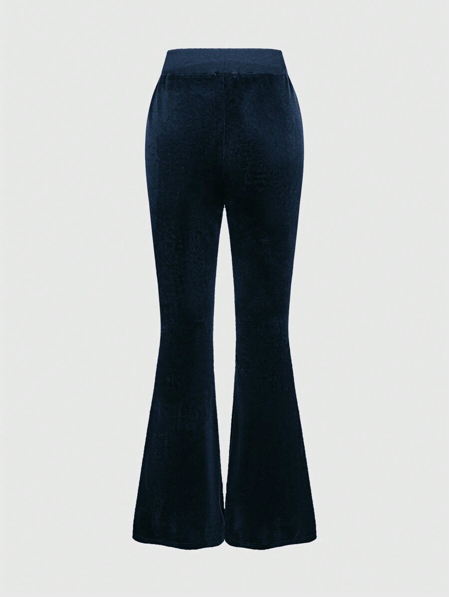 2 Stücke Damen Set aus Samt-Patchwork-Jacke mit Kapuze und ausgestellter Hose