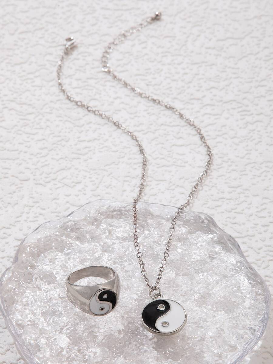 2 Stücke Schmuck Set mit Yin & Yang Dekor,