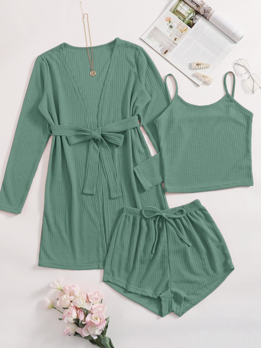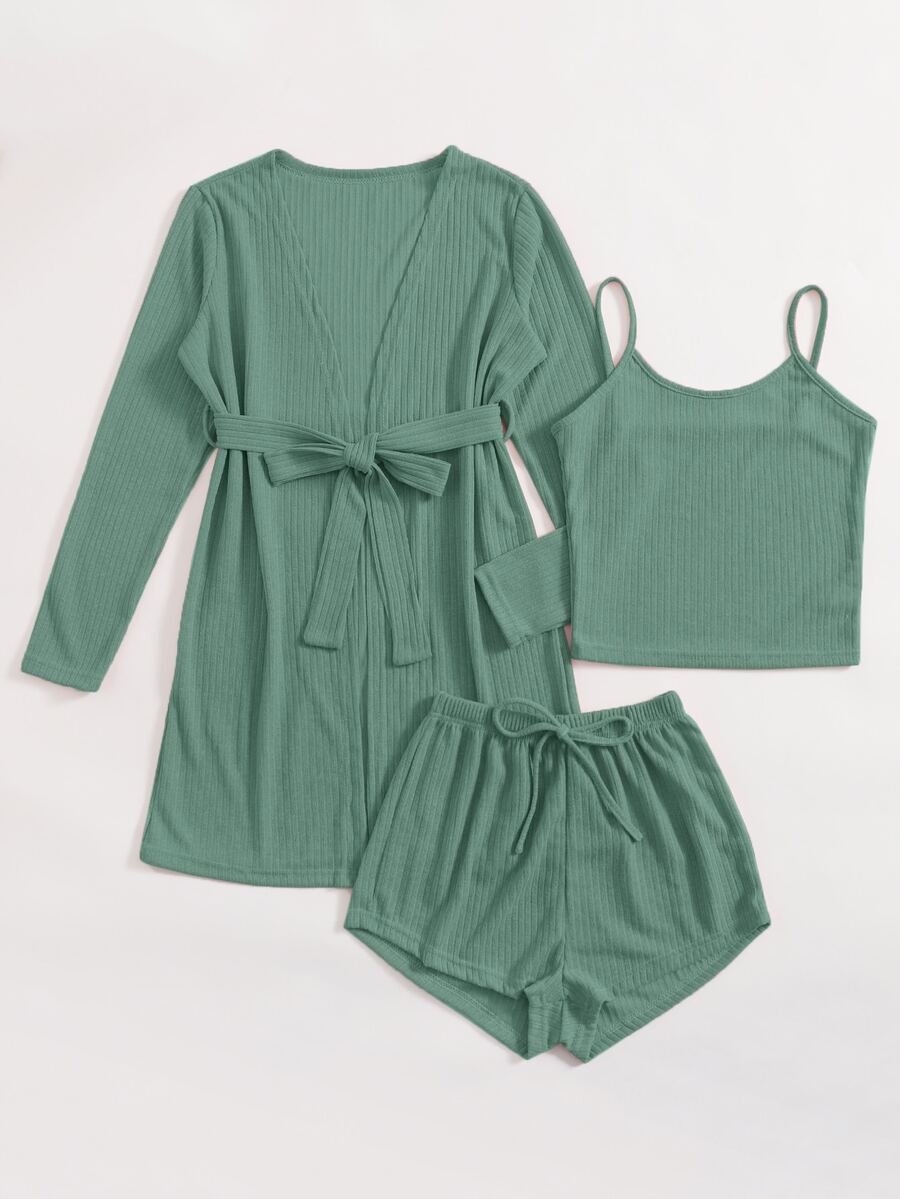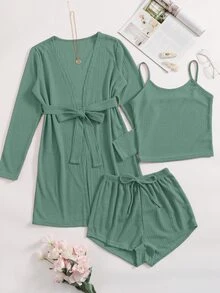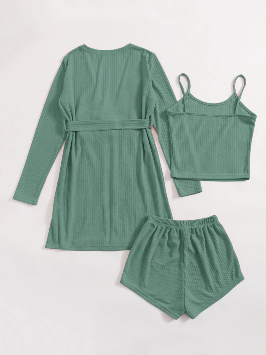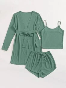 3 Packungen Rippstrick Schlafanzug Set mit Selbstbindung