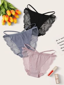 Vielfarbig Durchsichtige Spitze Einfarbig Höschen