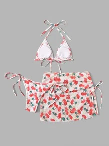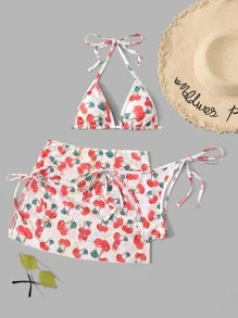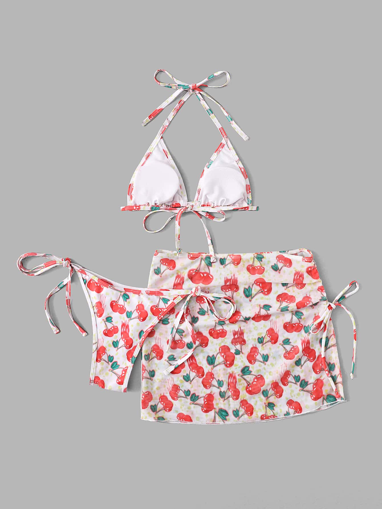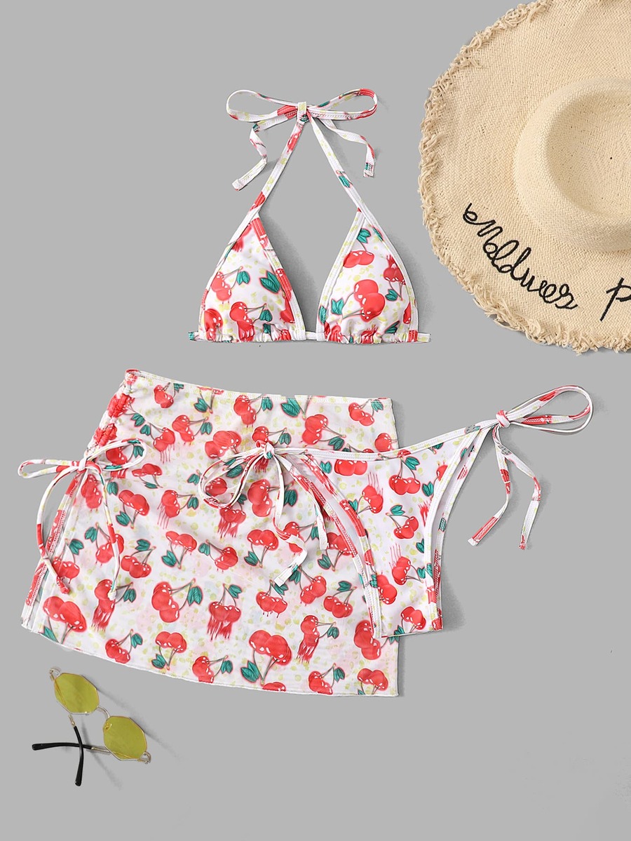 3 Packungen Kirschdruck Bikini mit Strandrock