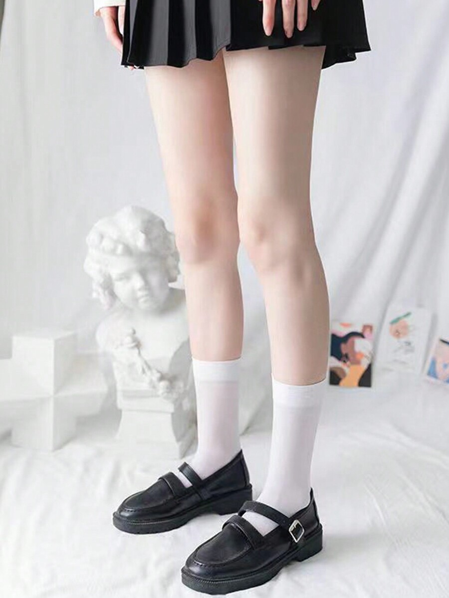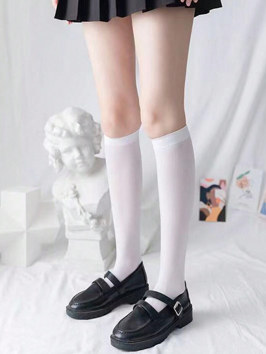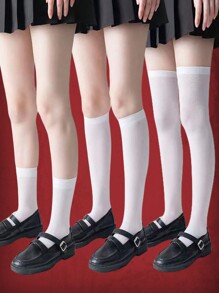 3 Paar Einfache Weiße Strümpfe Im College-stil Mit Hoher Elastizität