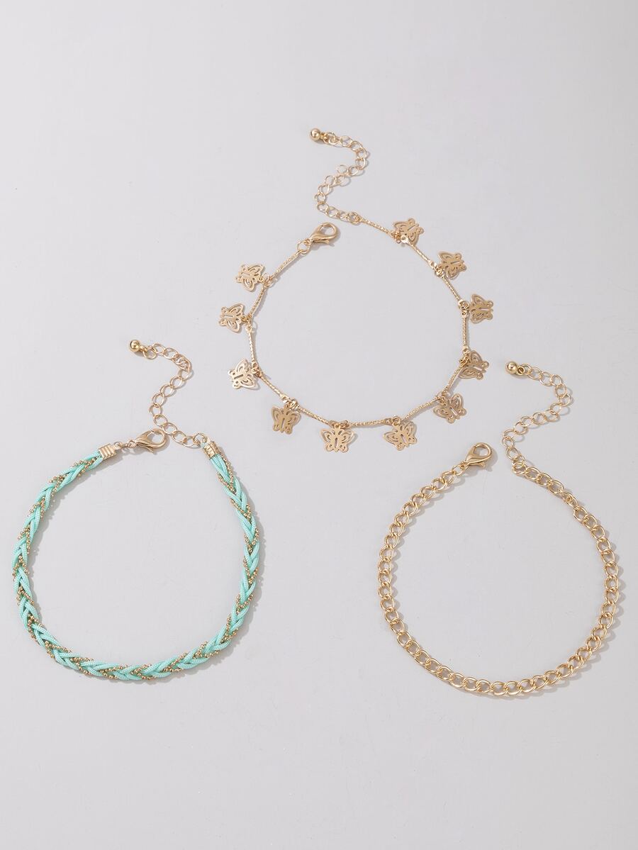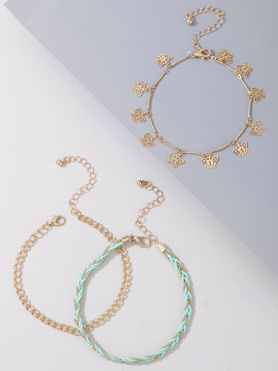 3 Stücke Fußkette mit Schmetterling Anhänger