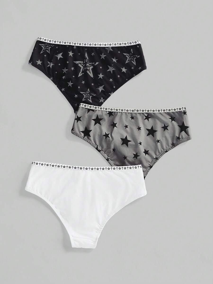 3 Stück/Set Damen Gothic Stern Muster Höschen mit Buchstaben Taillenbund