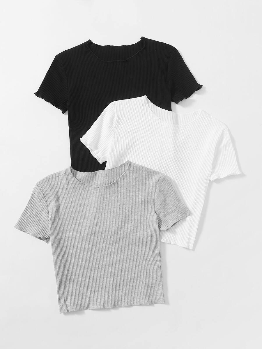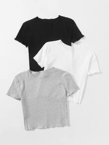 3 Stücke T-Shirt mit Wellensaum