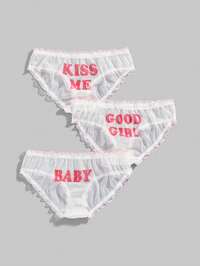 Kawaii 3 Stücke süße und niedliche Buchstaben Slogan Mesh Damen String Höschen