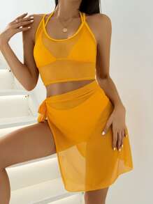 4er Pack Bikini Set mit ausgeschnittenem Strandrock