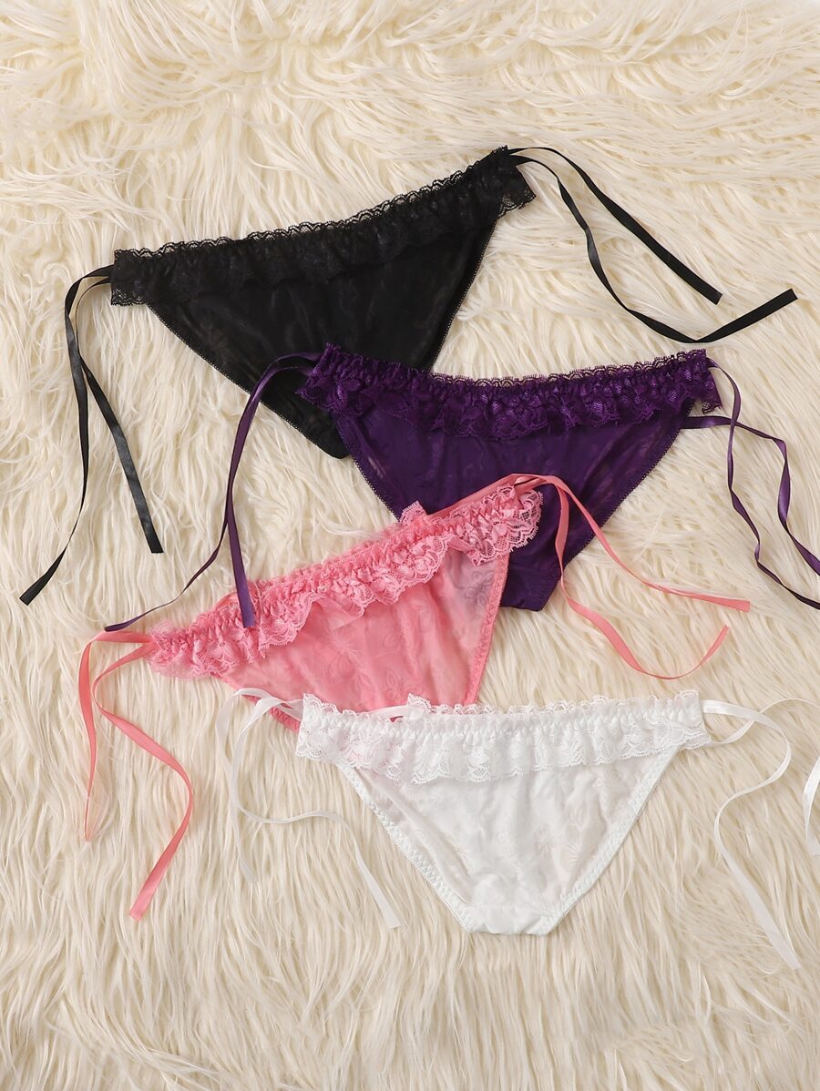 4 Packe Höschen Set mit Blumen Spitzen und seitlichem Band