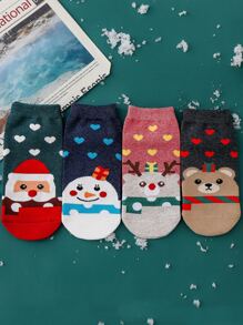 4 Paar Socken mit Weihnachtsmann & Herz Muster