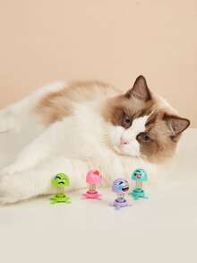 4 Stücke Katzen-Teaser-Spielzeug mit Cartoon Design, Feder